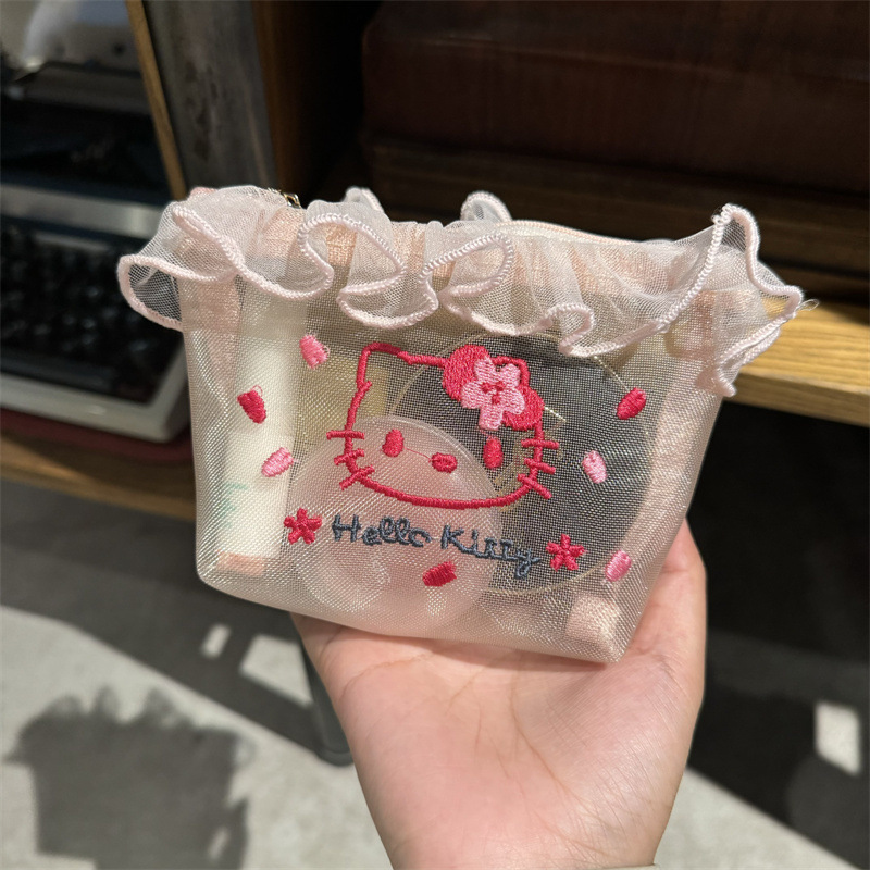 かわいい漫画 KT 猫刺繍化粧品袋おばさんティッシュ収納袋ポータブル化粧品袋汚れにくいメッシュジッパーバッグ