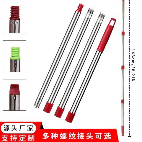 ほうきポールは別売り、4セクションモップポール卸売メーカー、アメリカンスタイル、ドイツスタイルのプラスチックネジ付きユニバーサルアクセサリー、ステンレス鋼