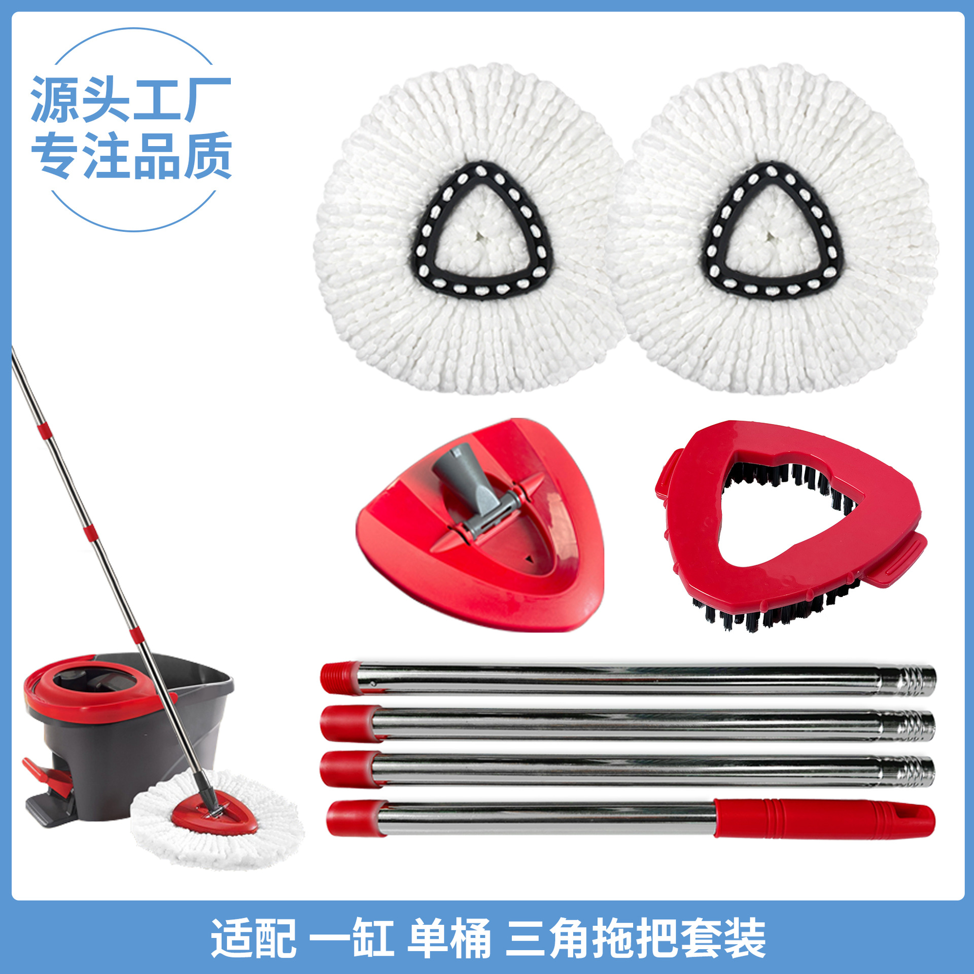 クロスボーダーハッダシングルバケット三角回転モップアクセサリーセットステンレス4セクションスプライスモップバーモップヘッド