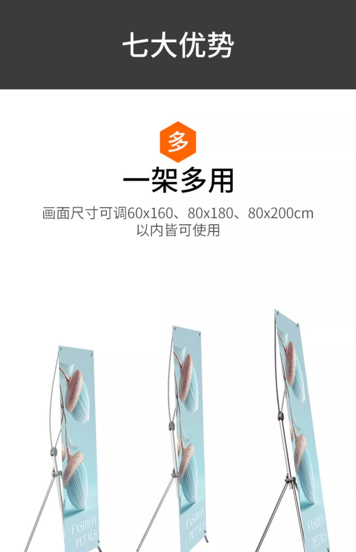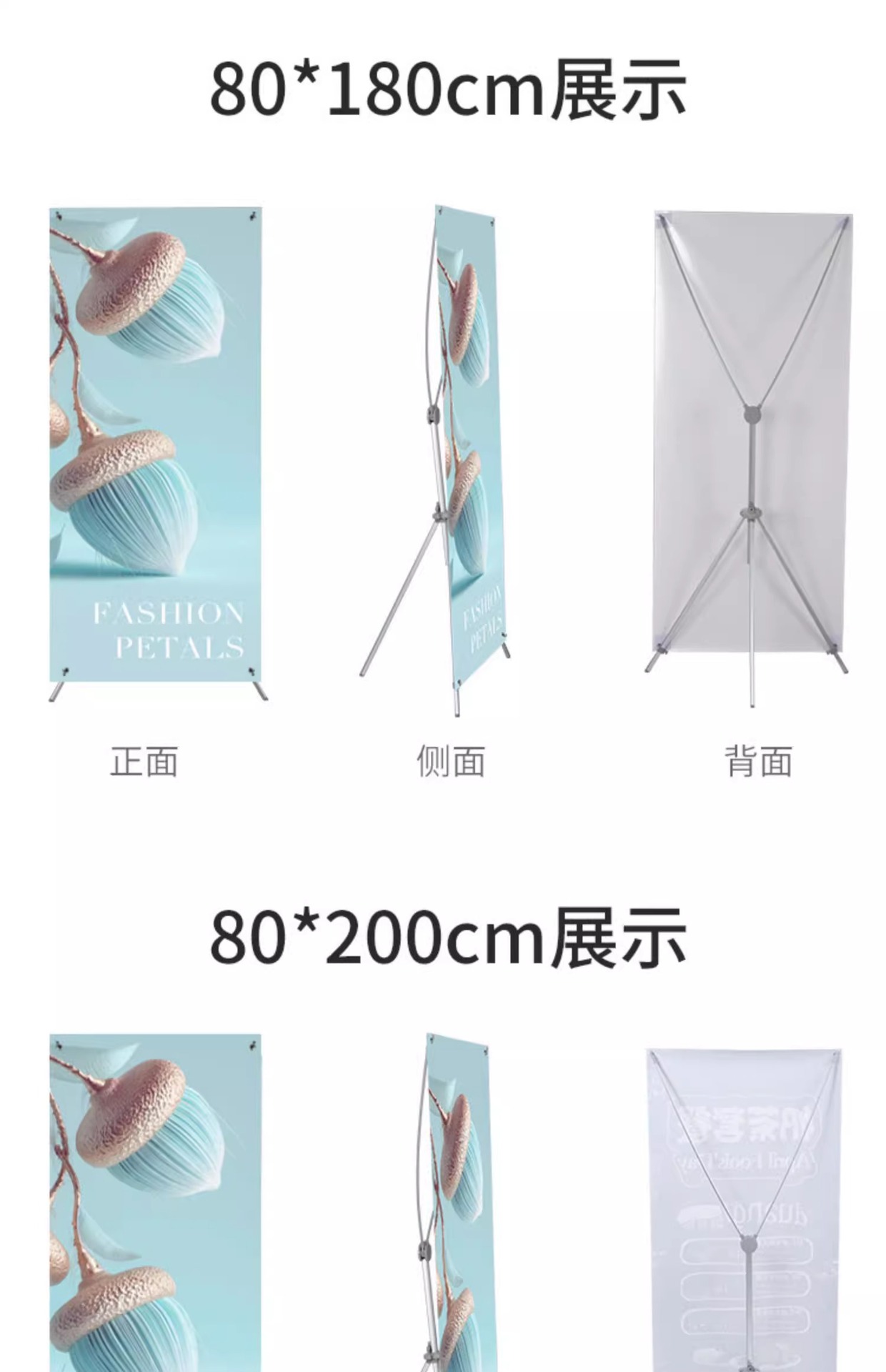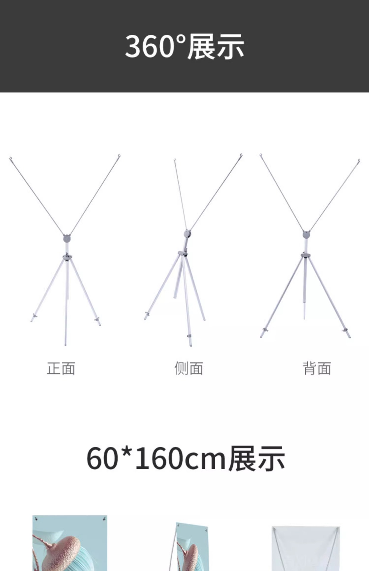 屋外防風X型スタンド60x160、屋外ポスターディスプレイ広告スタンド80x180、イージーロールポスターデザイン