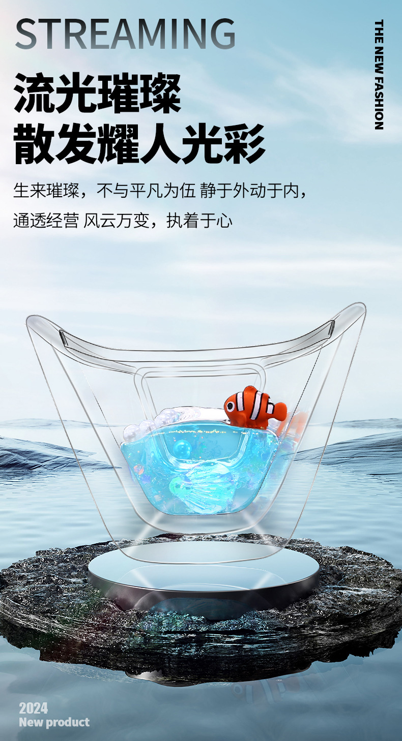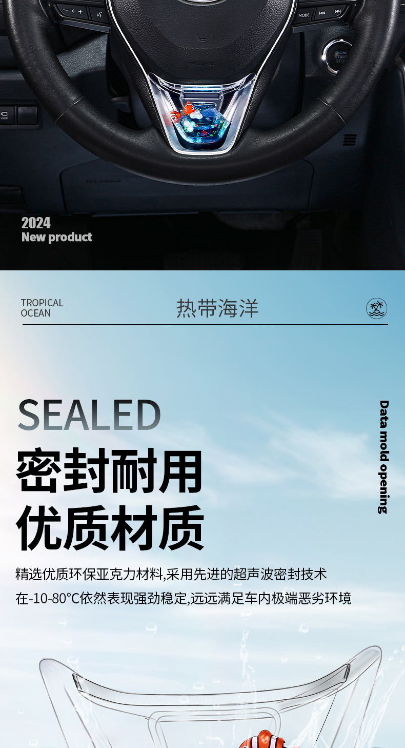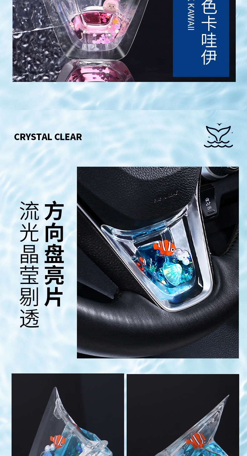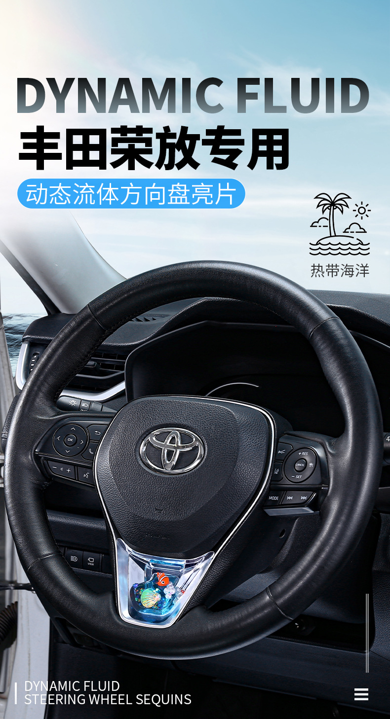テスラの新バージョンモデル Y/3 ステアリングホイール装飾ステッカー魚養殖ダイナミック流体スパンコールインテリアアクセサリーに適しています