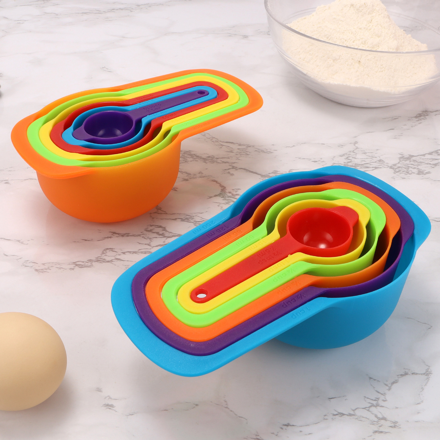 焙煎ツール五色計量スプーン粉ミルクカラープラスチックダブルスケール計量カップ計量スプーン6点セットスポットメーカー直供