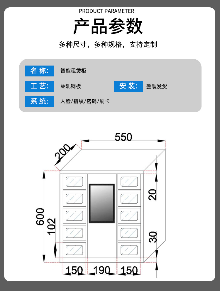 スマート電子ロッカー従業員物品ロッカー自己コードカード指紋顔認識システムロッカー