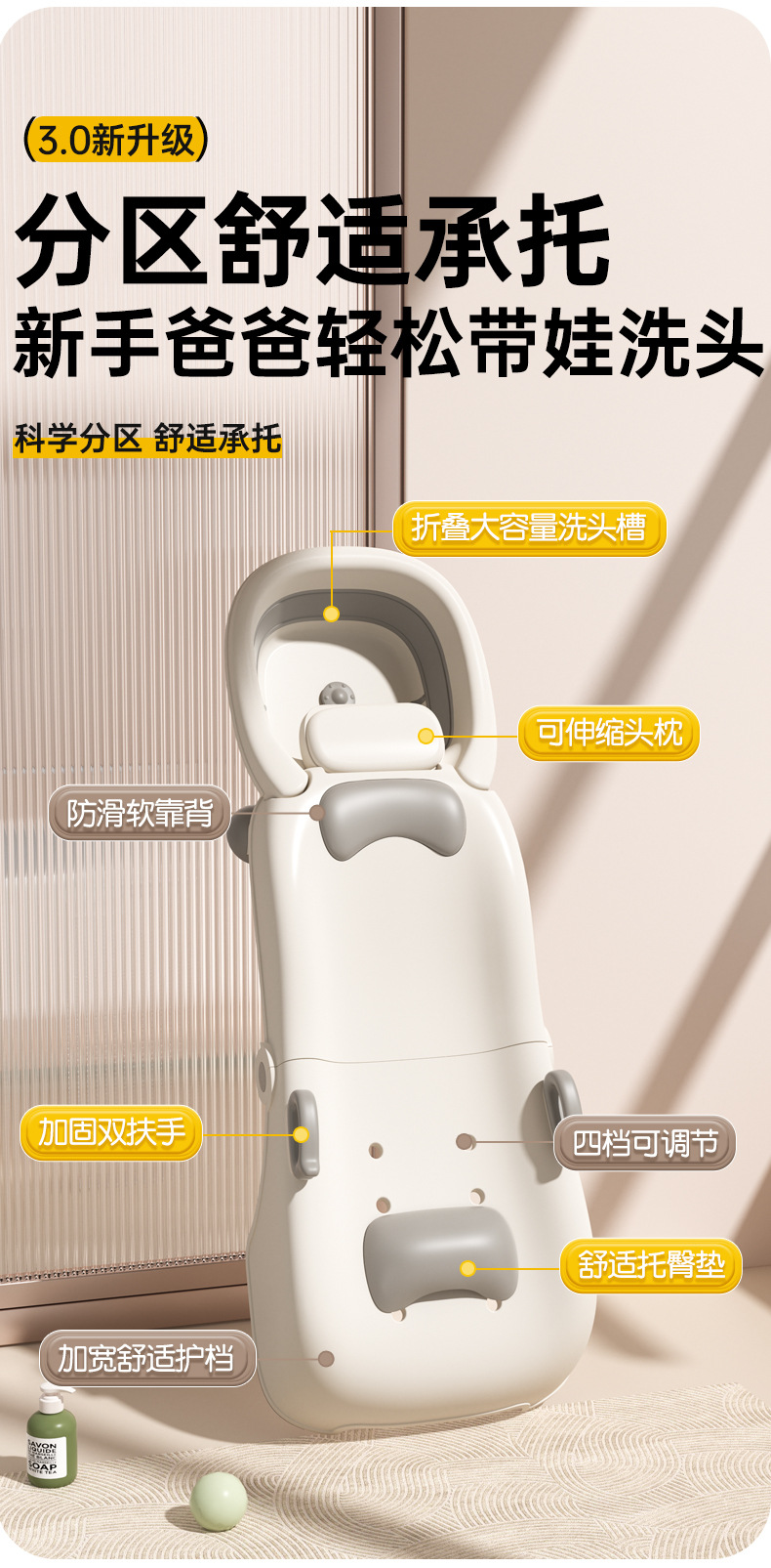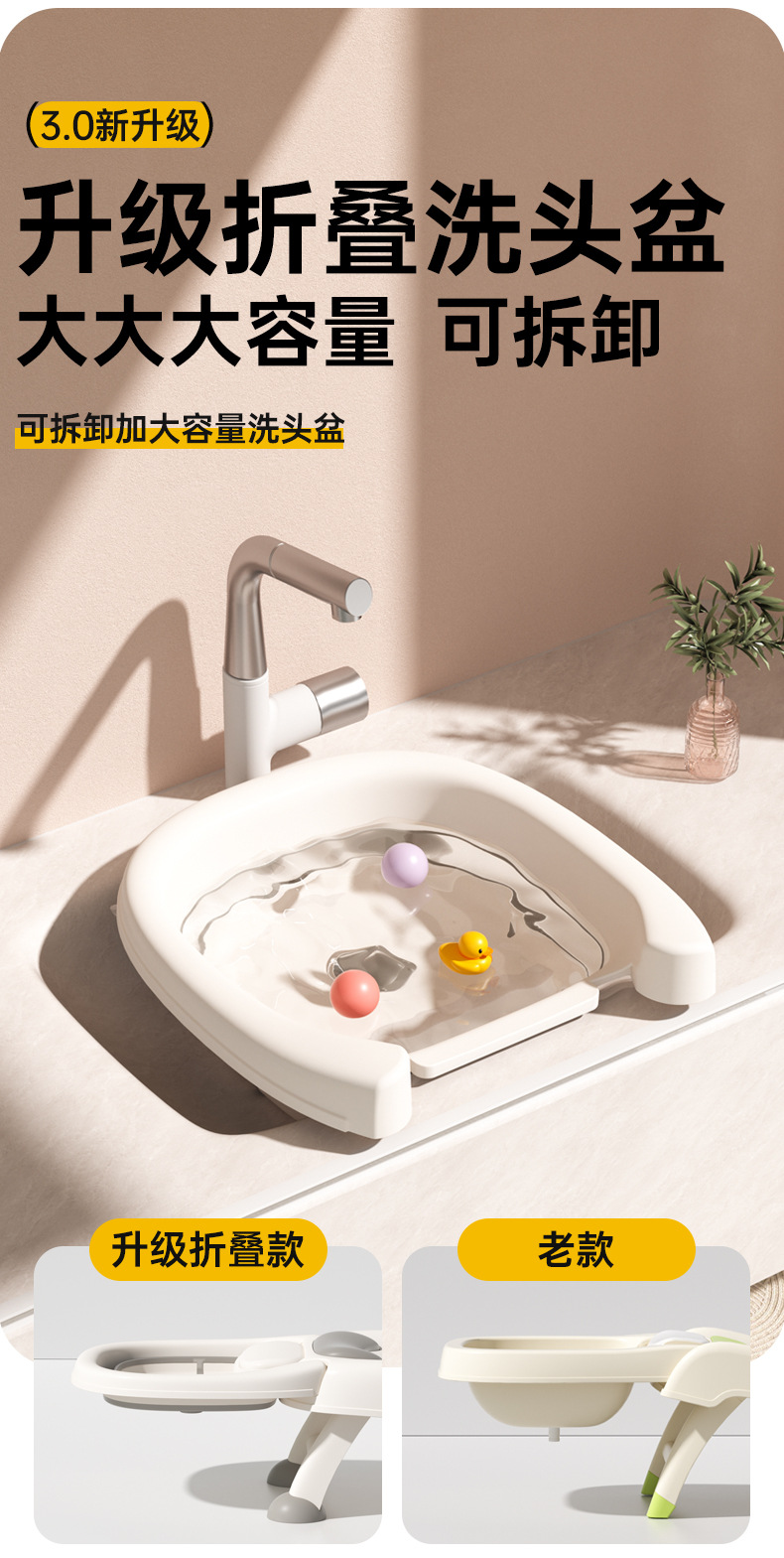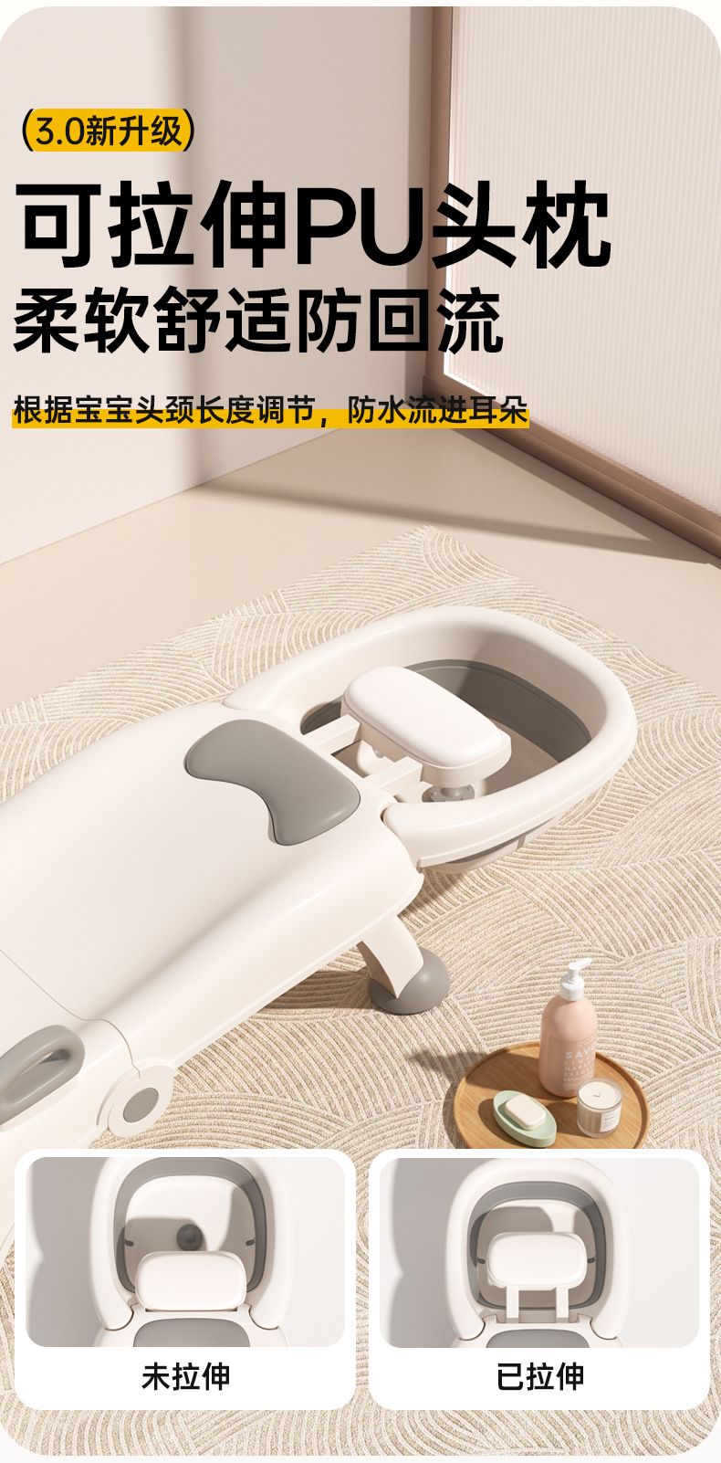 子供の頭を洗って寝ます。折り畳み式の頭を洗うことができます。