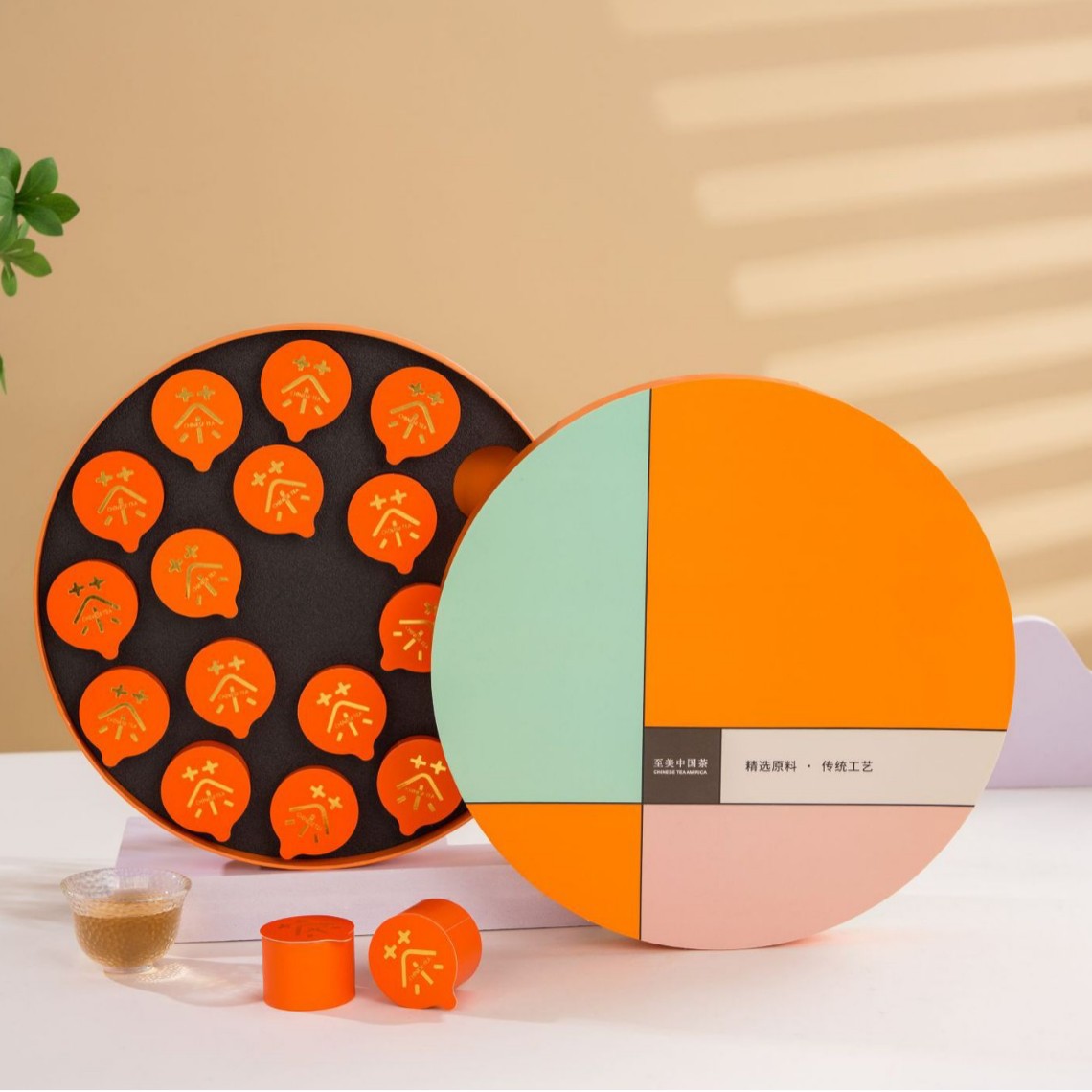 茶包装ギフトボックスラウンド紅茶緑茶ハイエンド空茶ケーキルーズティー小缶茶新しい包装箱密封
