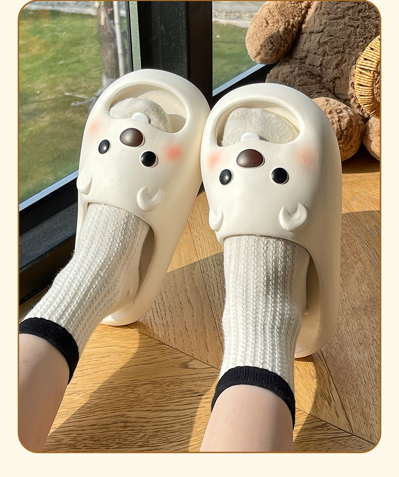 男性の綿のスリッパは秋冬の室内の厚い底のカバンとかわいい二ハの外で毛のぬいぐるみを着て保温します。