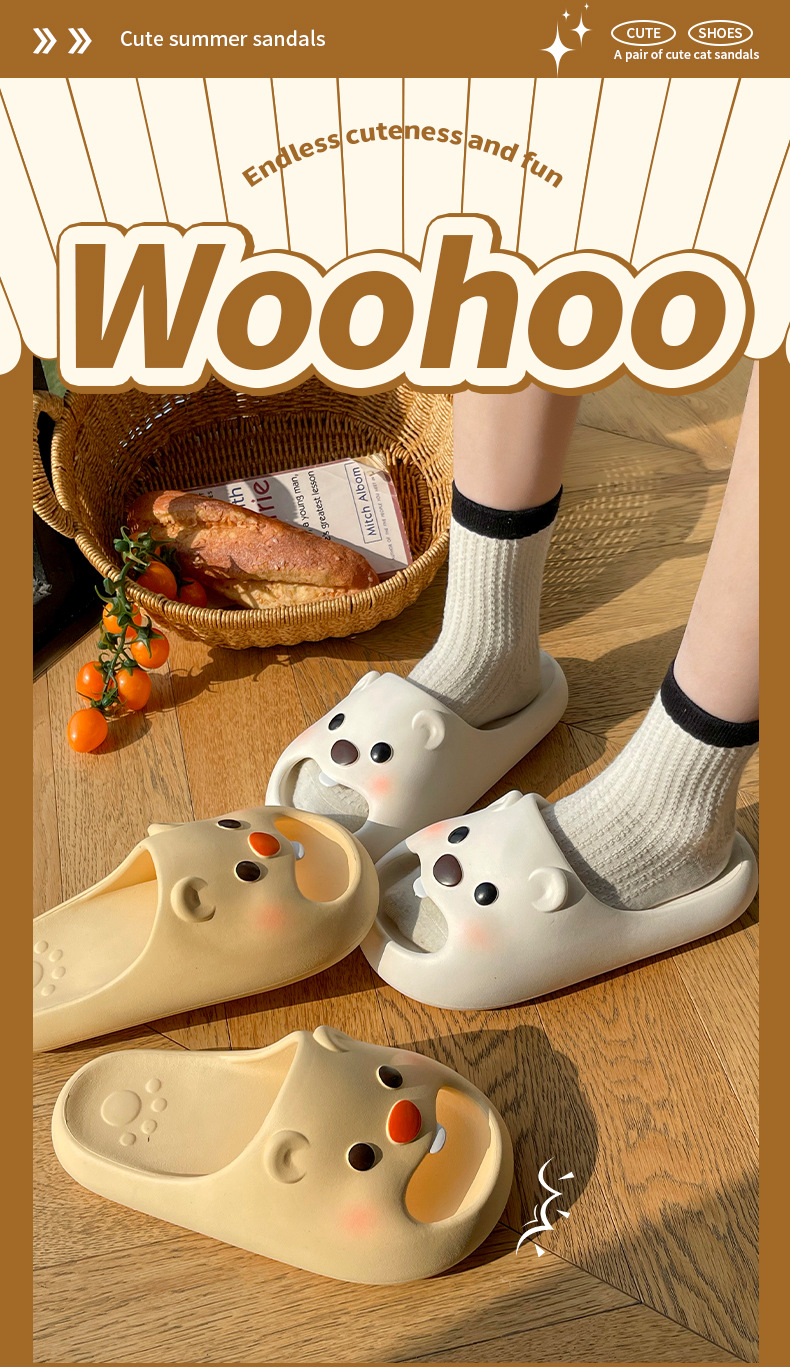 ビーバーのスリッパの女性の夏の外は2025の新型の室内の家庭用のかわいい少女の心の柔らかい萌えのサンダルの女性のタイプを着ます。