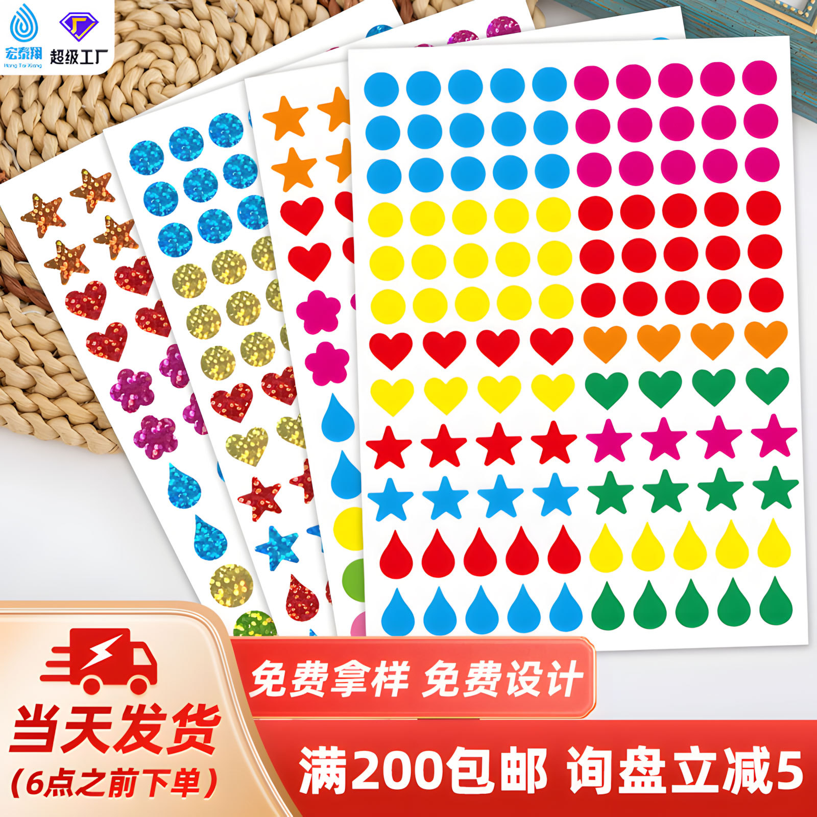 亚马逊儿童奖励贴纸diy学生课堂教师奖励装饰圆点镭射小星星贴纸