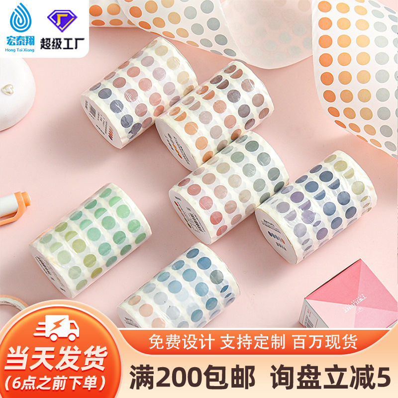 莫兰迪色圆点和纸胶带基础手帐彩色波点贴纸圆形标记手账笔记素材