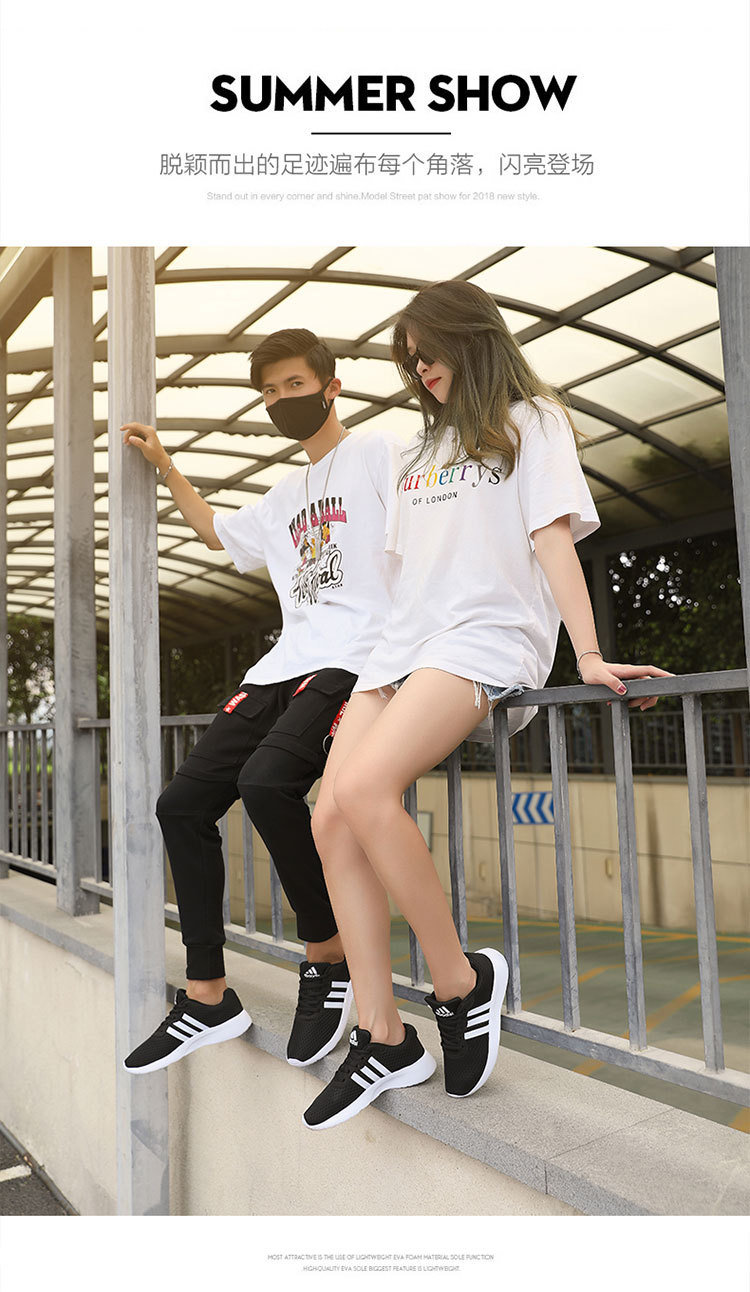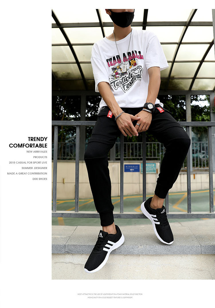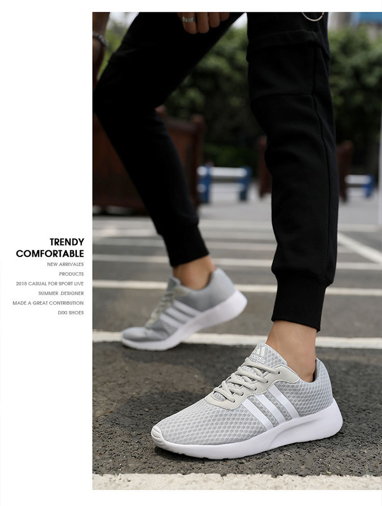 メンズシューズ夏カジュアルダストラベルスリーストライプスメッシュ通気性スポーツシューズアディダス男子学生耐摩耗性ランニングシューズ