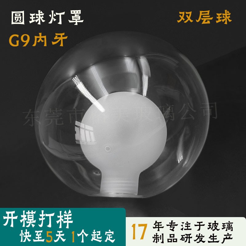防风透明吊灯圆球中球双层玻璃灯罩高硼硅耐热磨砂G9螺纹玻璃灯罩