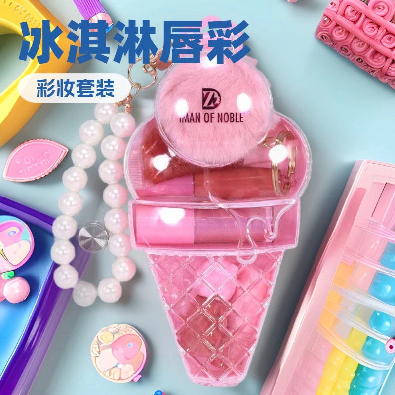 D-15 アイスクリームリップグロスセット IMAN OF NOBLE パール光沢保湿キーホルダーメイクアップコンビネーションブレスレット付き