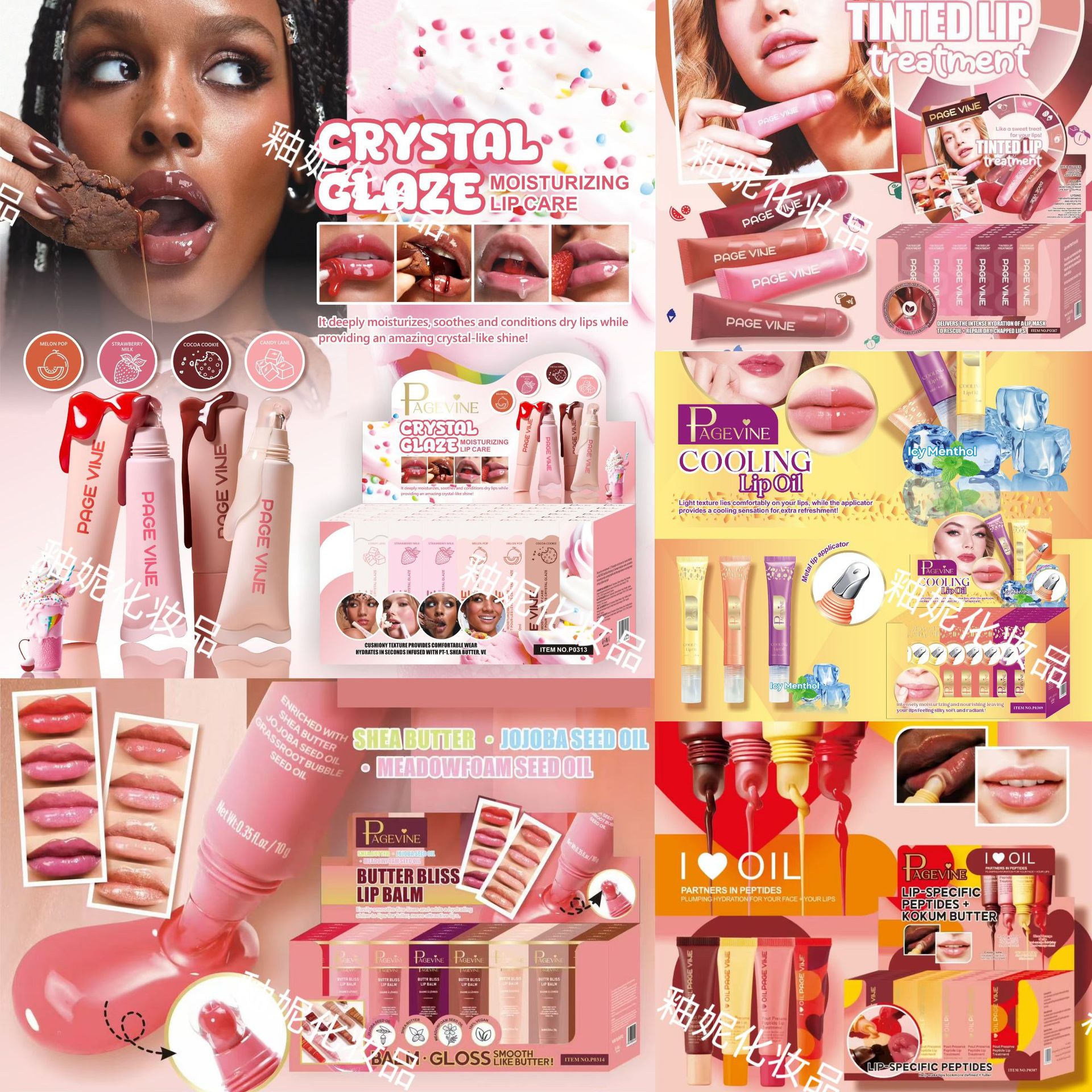 PAGE VINE 8色镜面珠光软管黄油润唇膏嘟嘟唇蜜液体多肽唇釉唇彩
