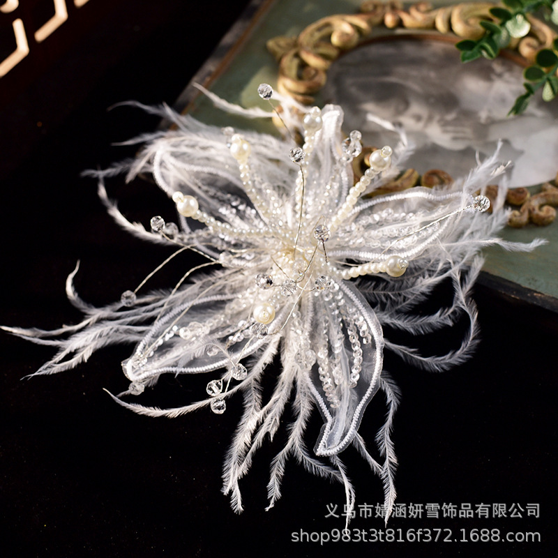 白色串珠花朵仙美羽毛边夹儿童表演出发饰新娘婚礼配饰影楼跟妆头