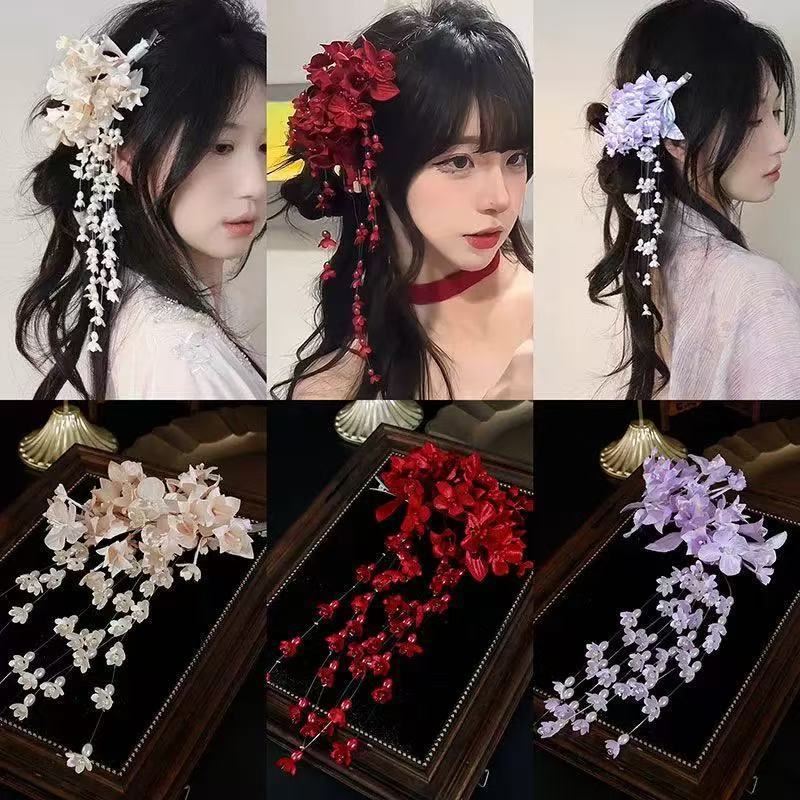 超仙中国式新婦森系流蘇ヘアクリップすずらん花結婚側側側レトロ古風髪飾り頭飾り