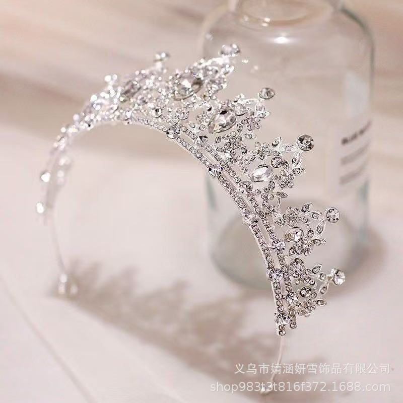 外国貿易の王冠の頭飾り欧米の花嫁のドレスの王冠の合金は銀色の豪華な水晶の王冠のメーカーを飾って直接販売します。