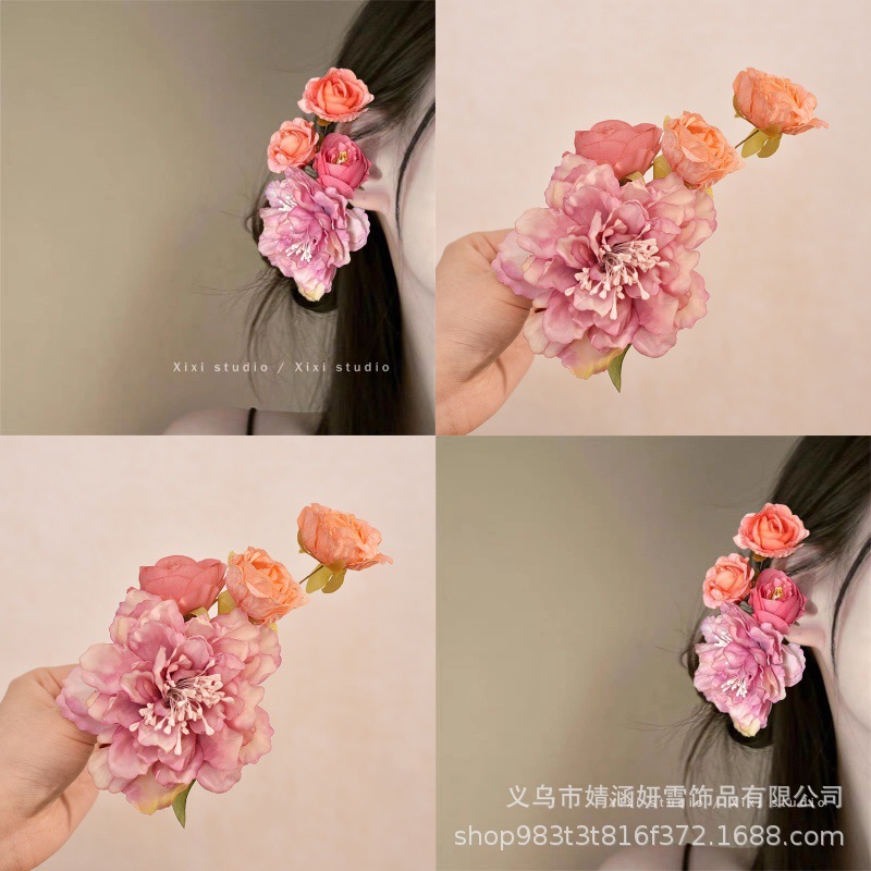 超妖精の純粋な欲望!牡丹の花のヘアピン!女性のハイエンド休暇写真ヘアピンヘアピンヘアツール新製品