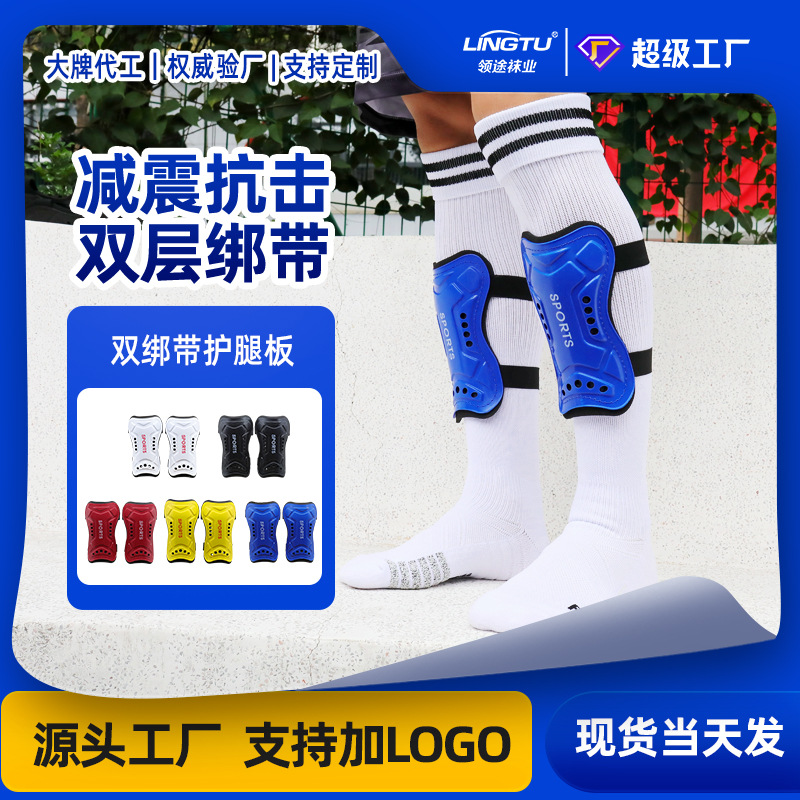 专业足球比赛护腿板双绑带小腿护胫绑带耐磨运动透气防撞护板批发