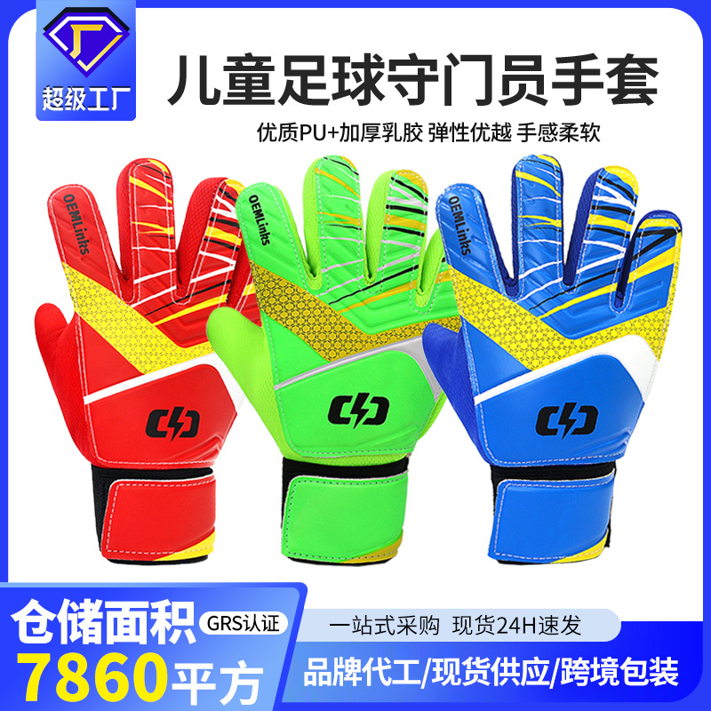 児童サッカーのゴールキーパーの手袋は指を厚くしてラテックスの小中学生の訓練のゴールキーパーの手袋のメーカーを保護して直接販売します。