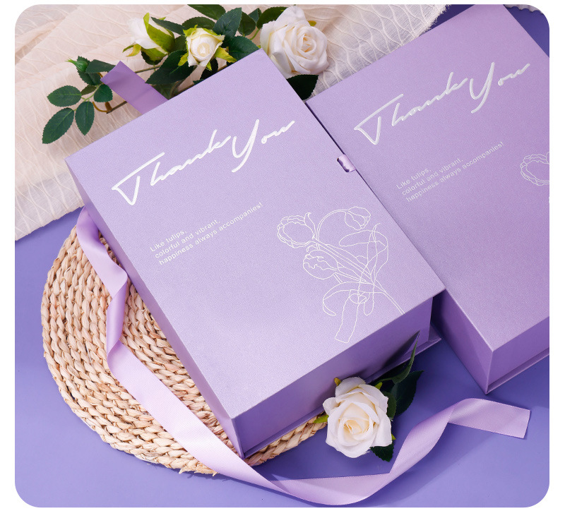 仕様とモデル パープルチューリップブックボックス (空箱 + リボン + ギフトバッグ); 20*10*27