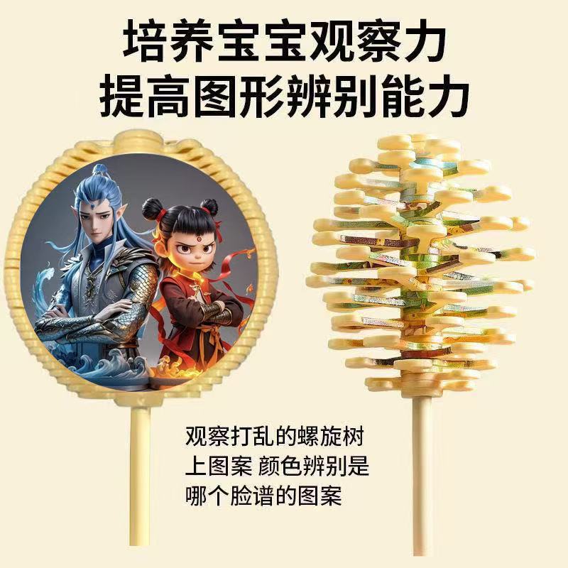 哪吒旋转棒儿童脸谱斐波那契螺旋树卡通魔童闹海棒棒糖解压摆件
