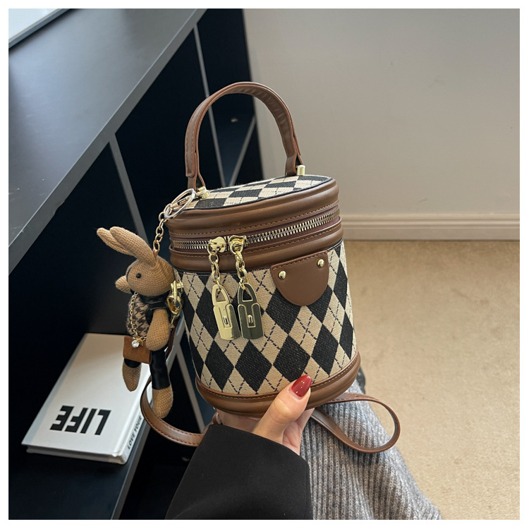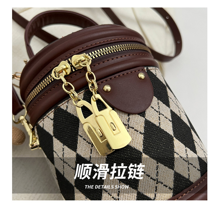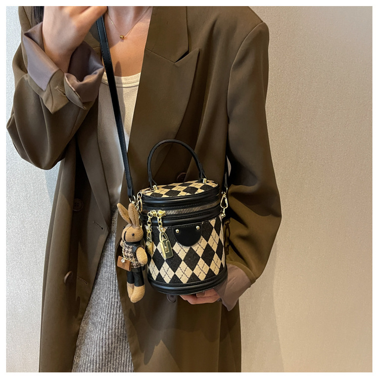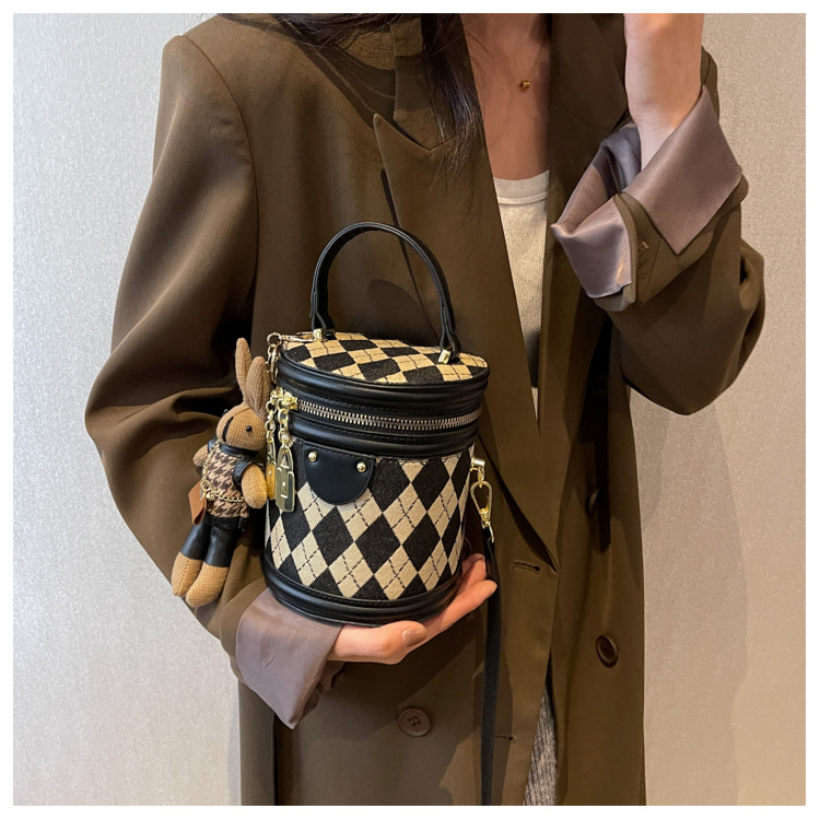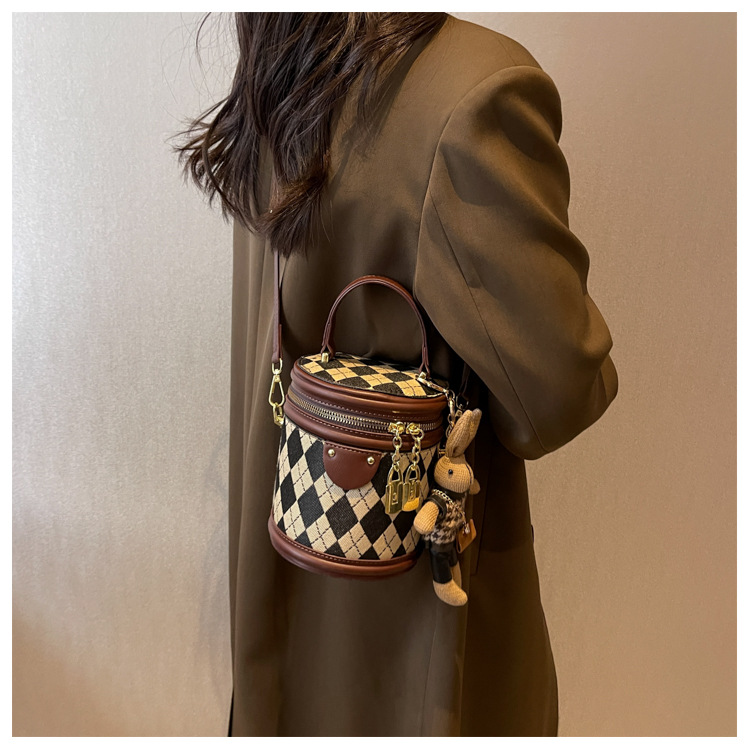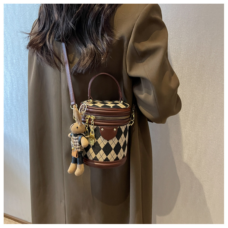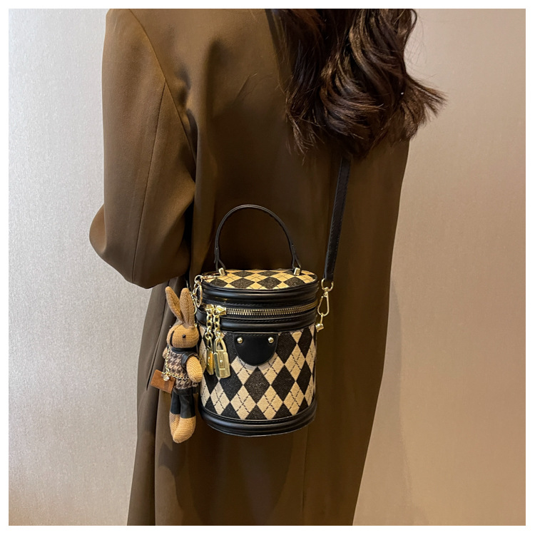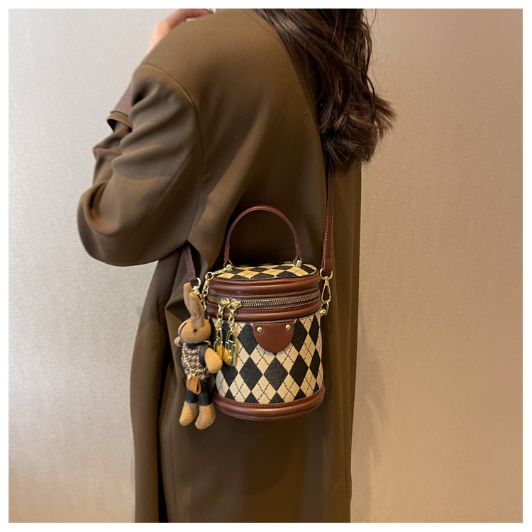 レディースバッグシリンダーバッグ2025新しいファッションニッチレトロハイエンドテクスチャ菱形斜めショルダーポータブルバケットバッグ