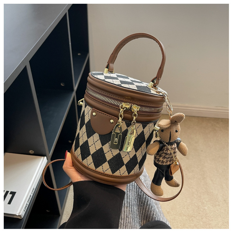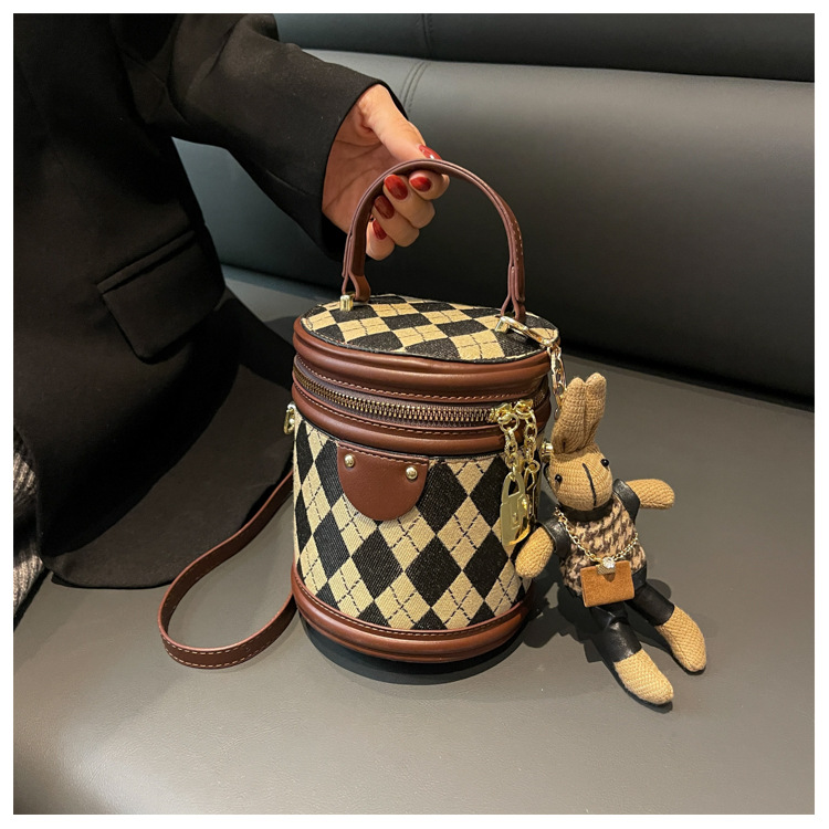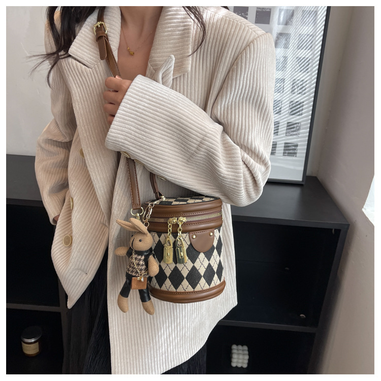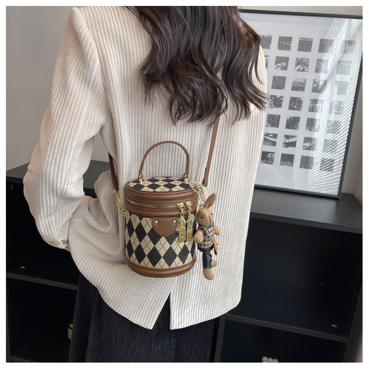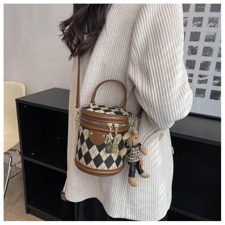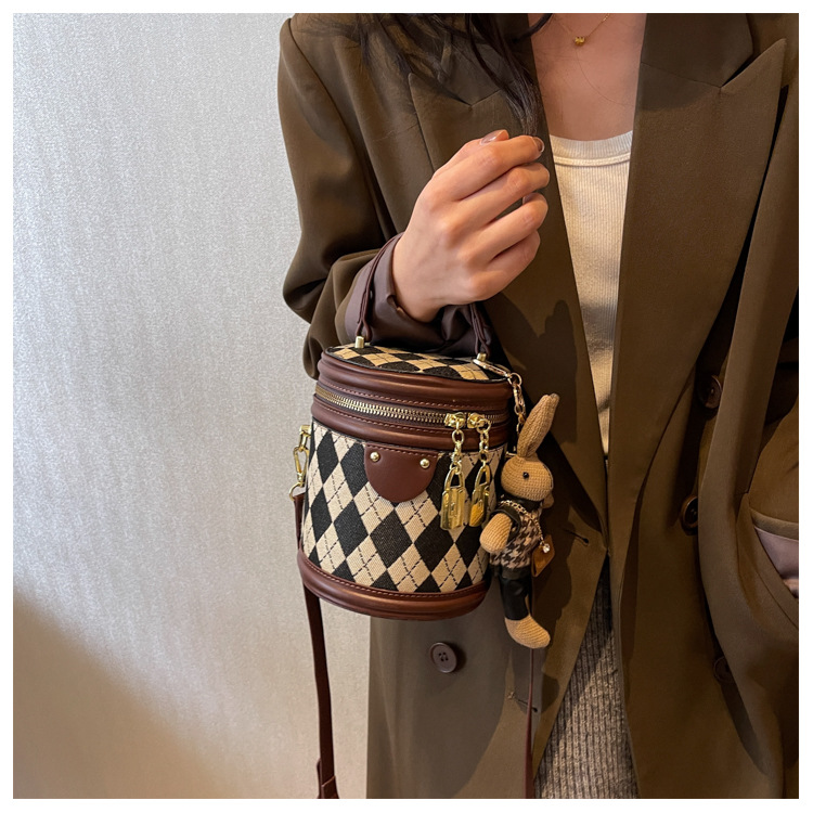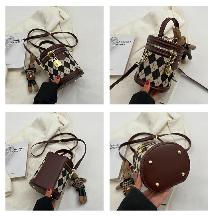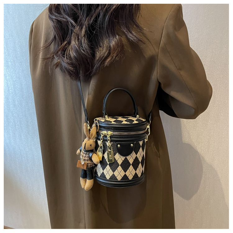レディースバッグシリンダーバッグ2025新しいファッションニッチレトロハイエンドテクスチャ菱形斜めショルダーポータブルバケットバッグ