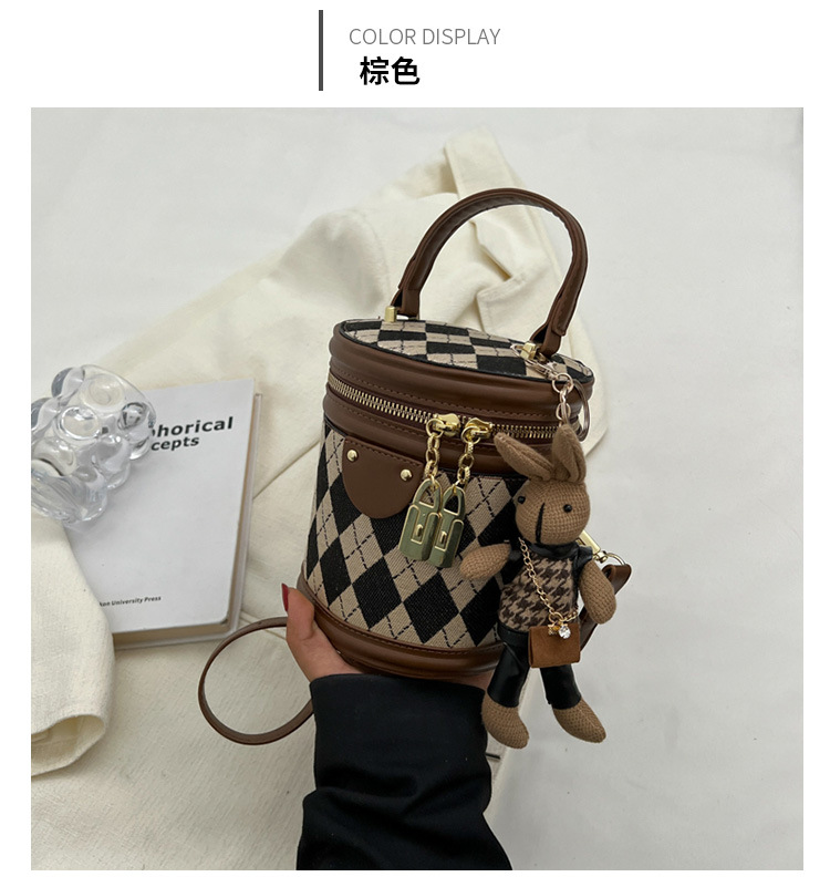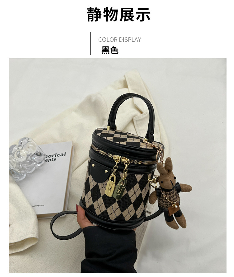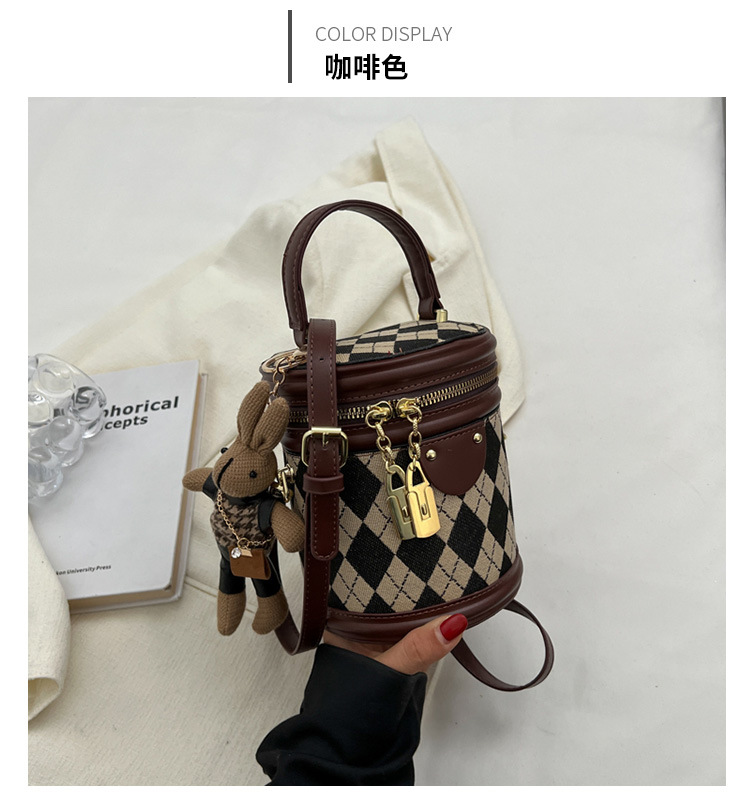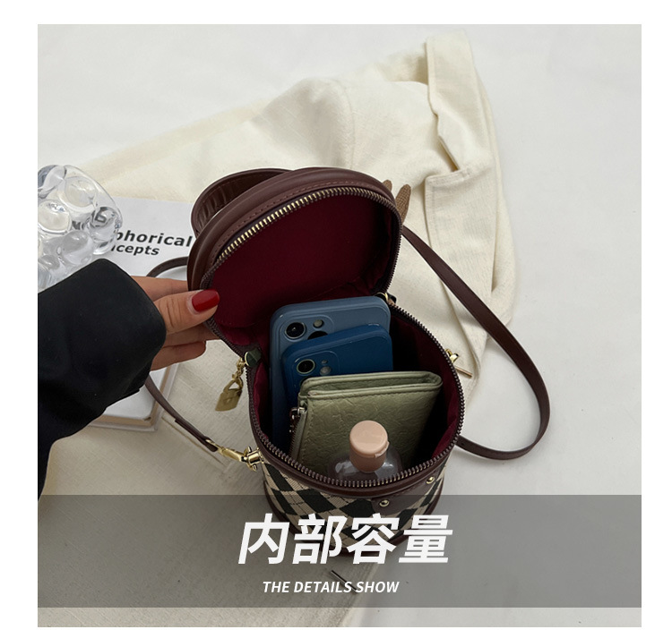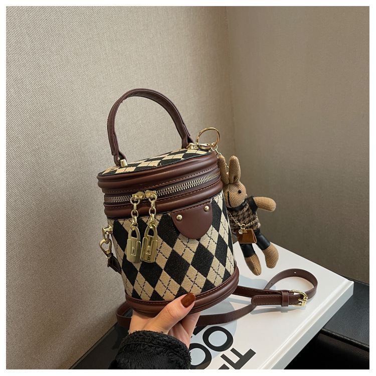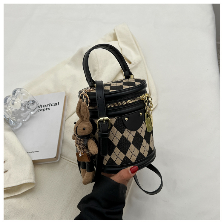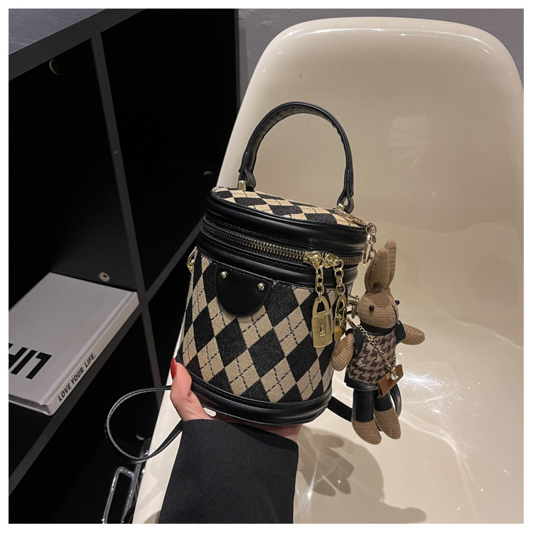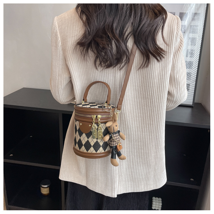 レディースバッグシリンダーバッグ2025新しいファッションニッチレトロハイエンドテクスチャ菱形斜めショルダーポータブルバケットバッグ
