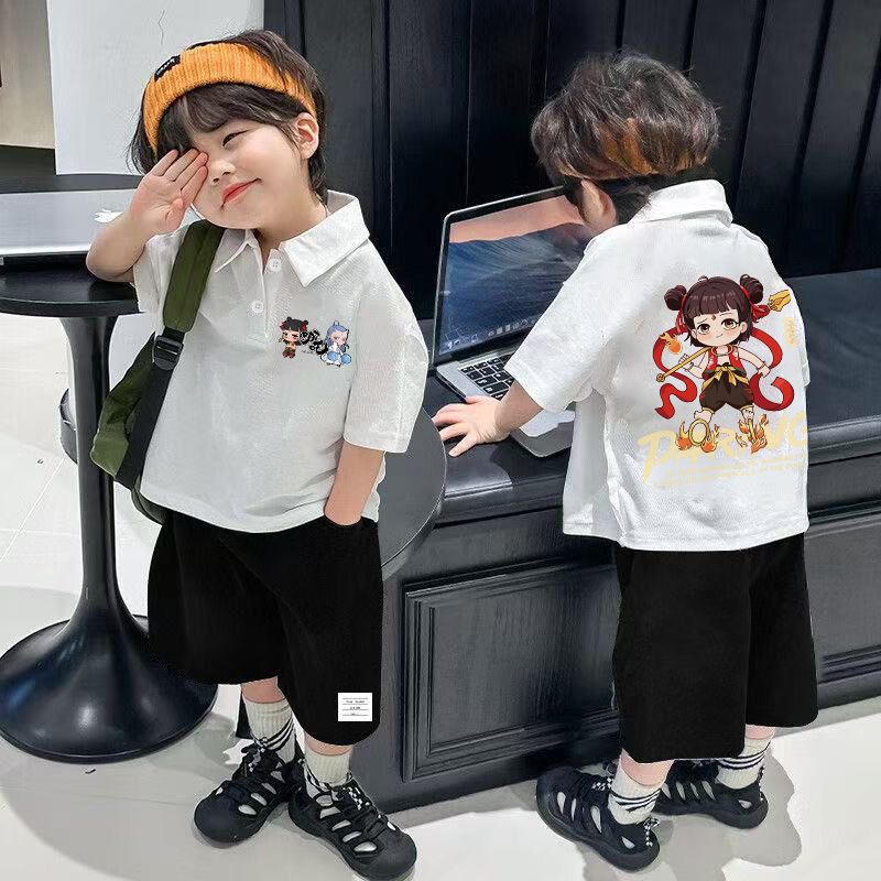 夏の子供用トップス新しいスタイルの男の子と女の子のベビーホワイトネザ Tシャツトレンディな綿 100% 半袖ポロシャツ