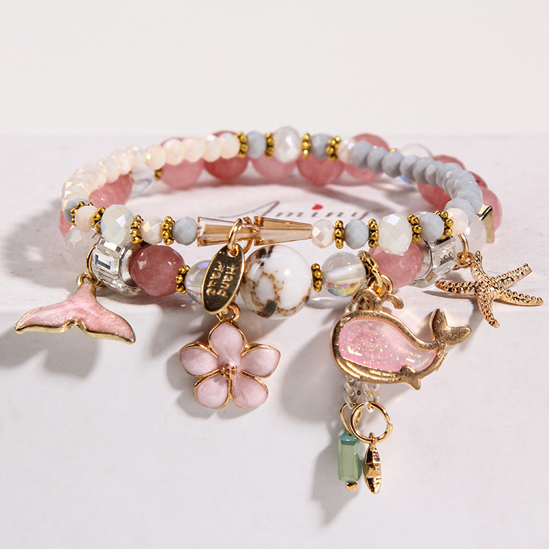 クジラの尾の水晶のブレスレットの手串の女性の韓国版の甘い学生の森系の親友の手環の姉妹の手環の個性のブレスレット