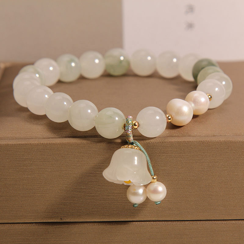 天山翠玉のブレスレットの女性ins小衆の軽豪華な復古の玉髄の鈴の蘭の数珠の手串は娘の蜜の贈り物を送ります。