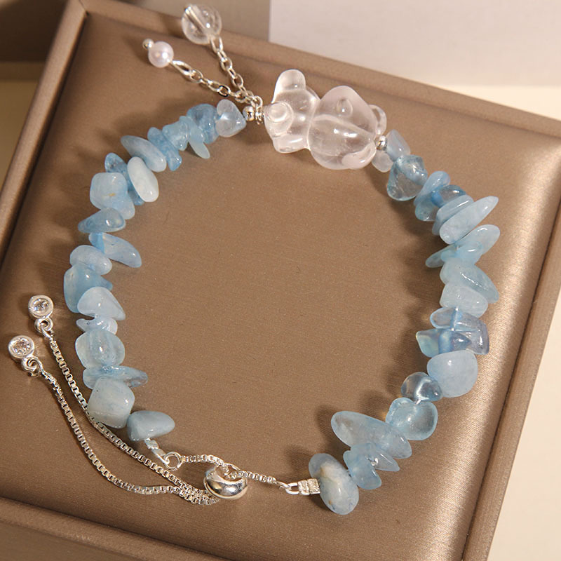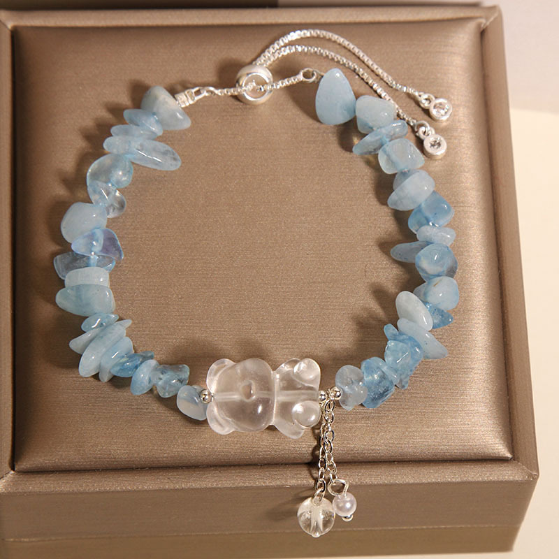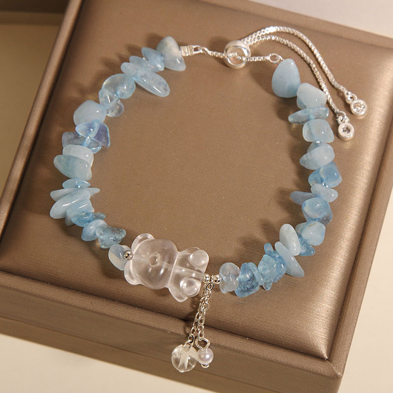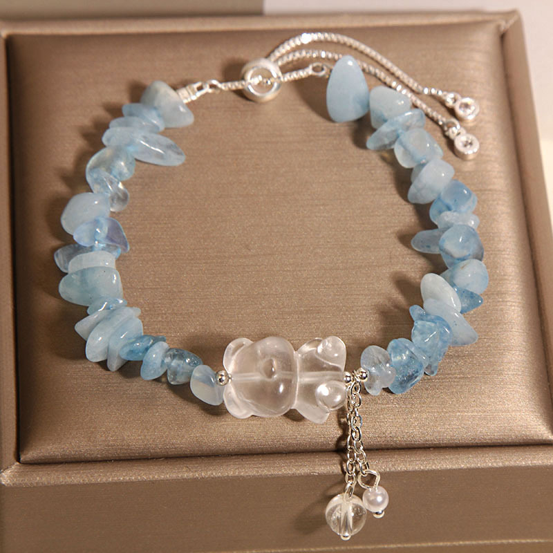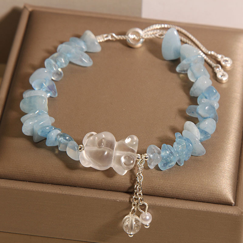 女性用天然砂利クリスタルブレスレット、新しい中国風のライトラグジュアリーニッチ絶妙なハイエンドホワイトクリスタルベアブレスレット