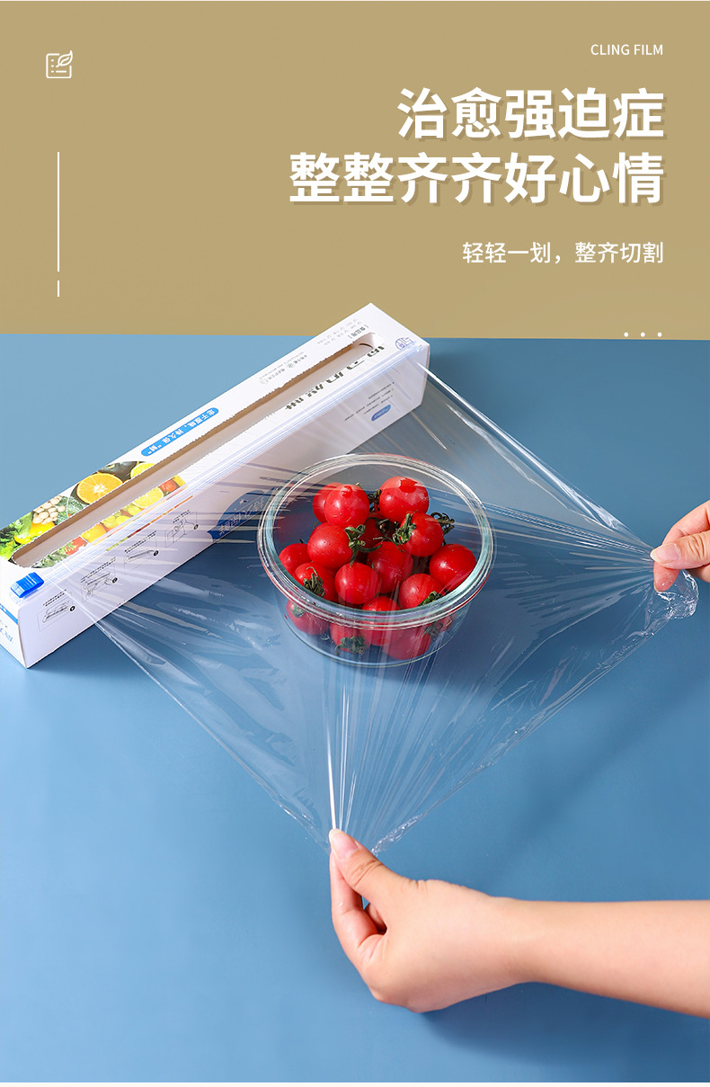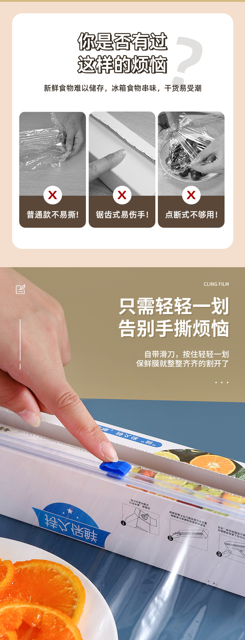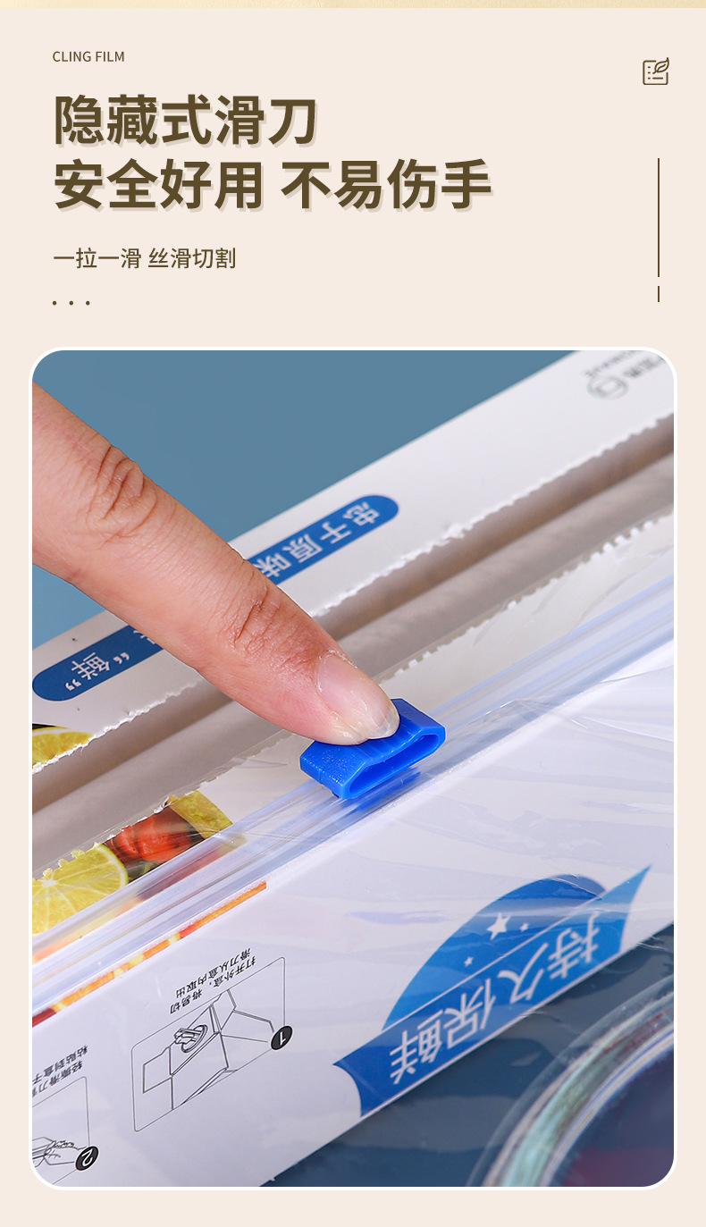 PE免手撕保鲜膜厨房滑刀式保鲜膜带切割器食品保鲜膜