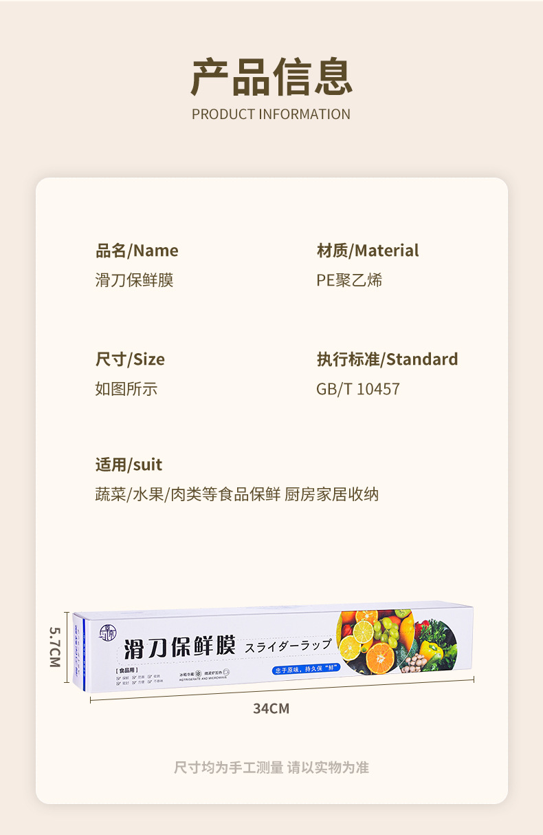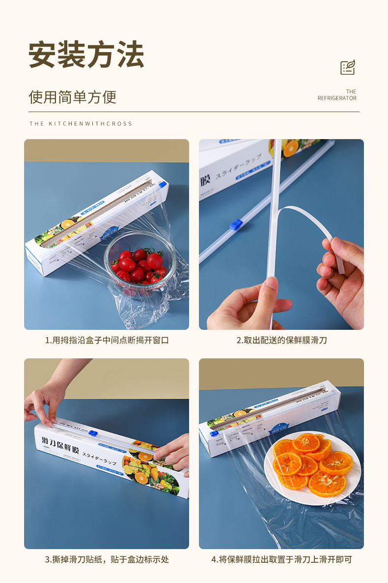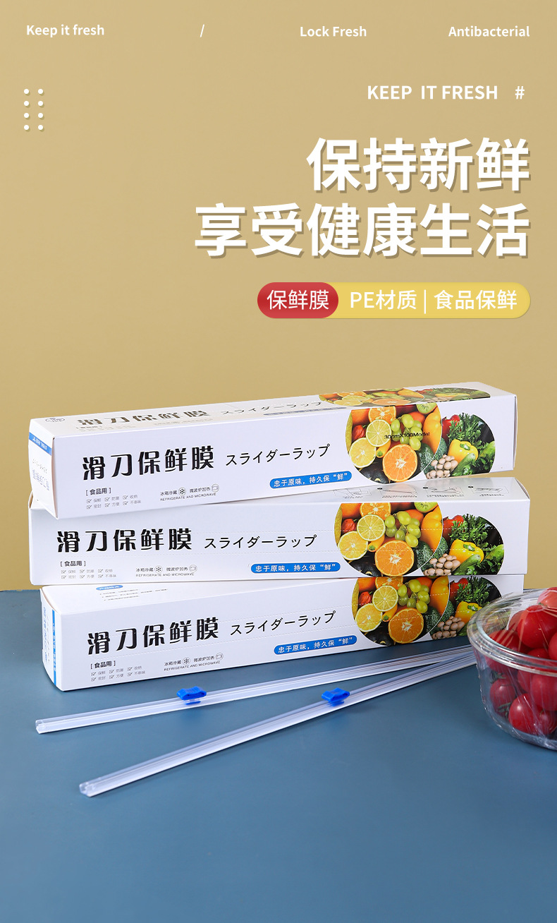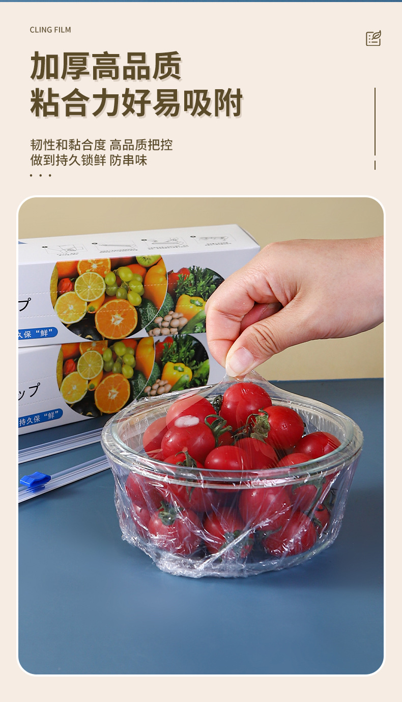 PE免手撕保鲜膜厨房滑刀式保鲜膜带切割器食品保鲜膜