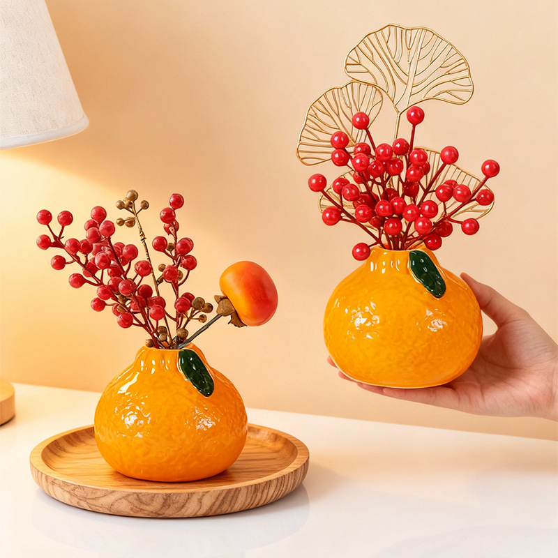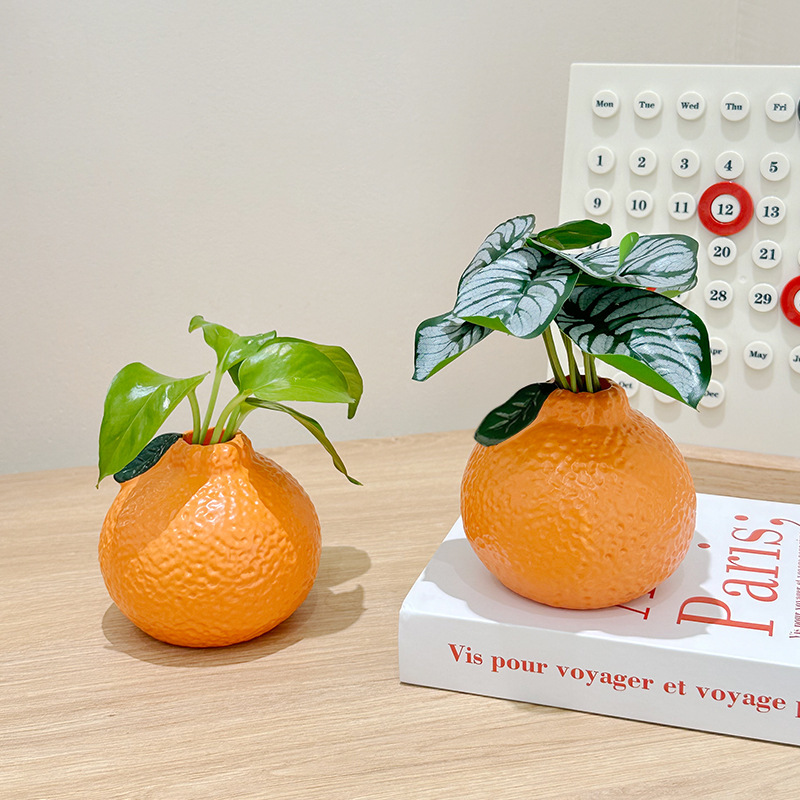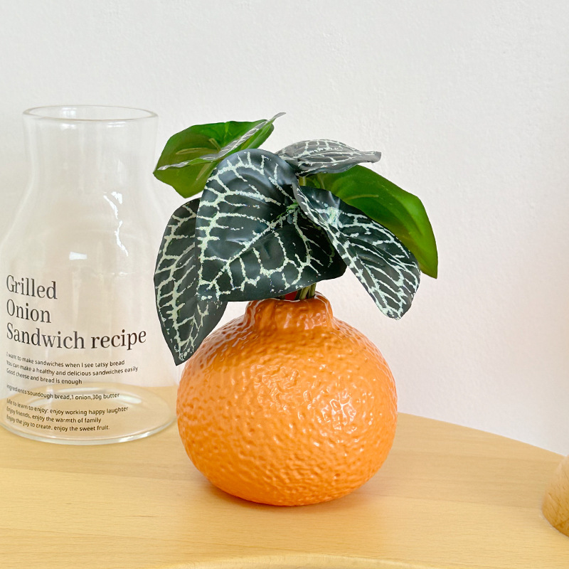 模擬オレンジ花瓶セラミック水耕植物容器リビングルームオフィス装飾品クリエイティブフラワーアレンジメント小さな植木鉢装飾