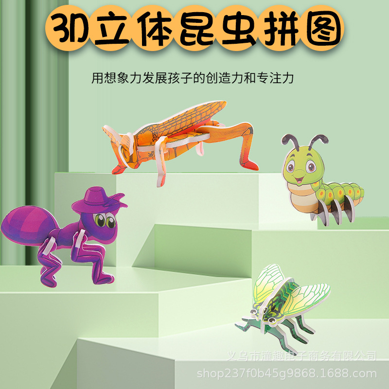 3d立体動物パズル子供趣味昆虫創意diy玩具幼児早教手作りパズルカード