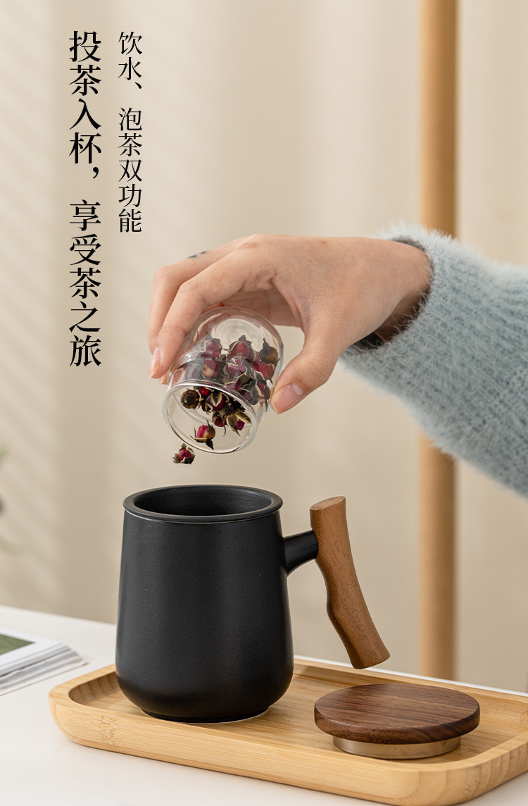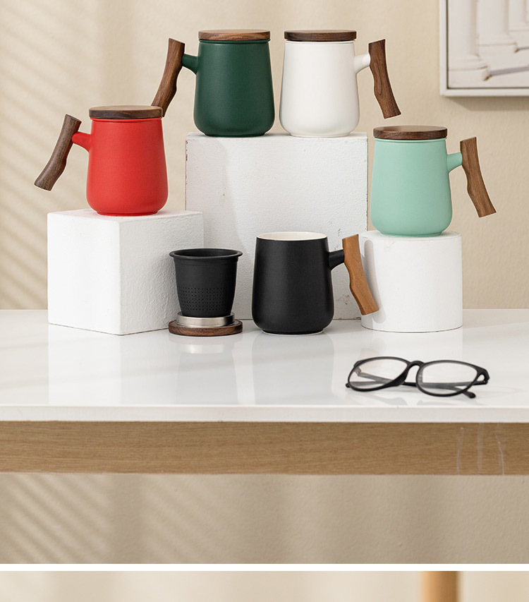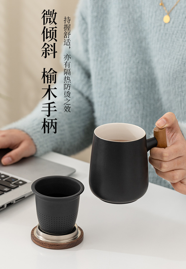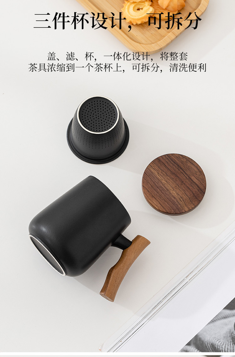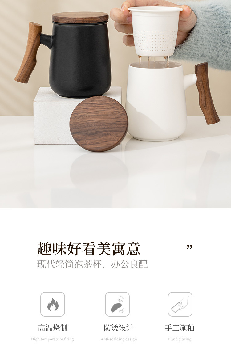 简约陶瓷泡茶杯带盖茶水分离过滤马克杯大容量水杯礼品可定logo