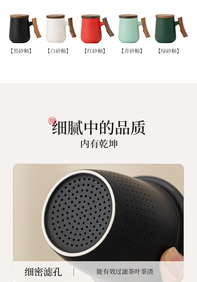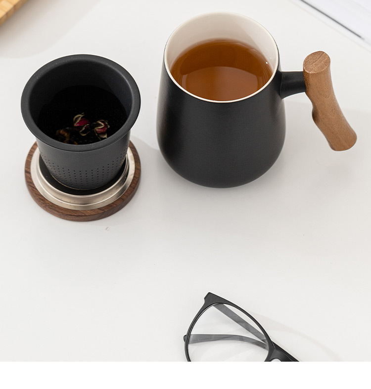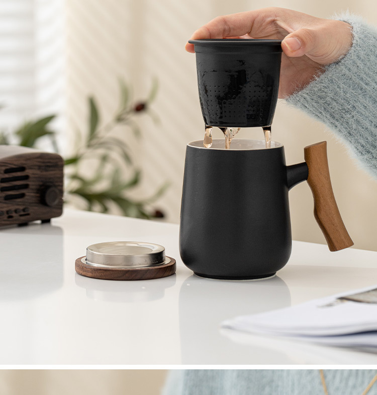 フィルター付き草木灰ティーカップ 3 点セット オフィス茶水分離カップ セラミックマグ ロゴをカスタマイズ可能