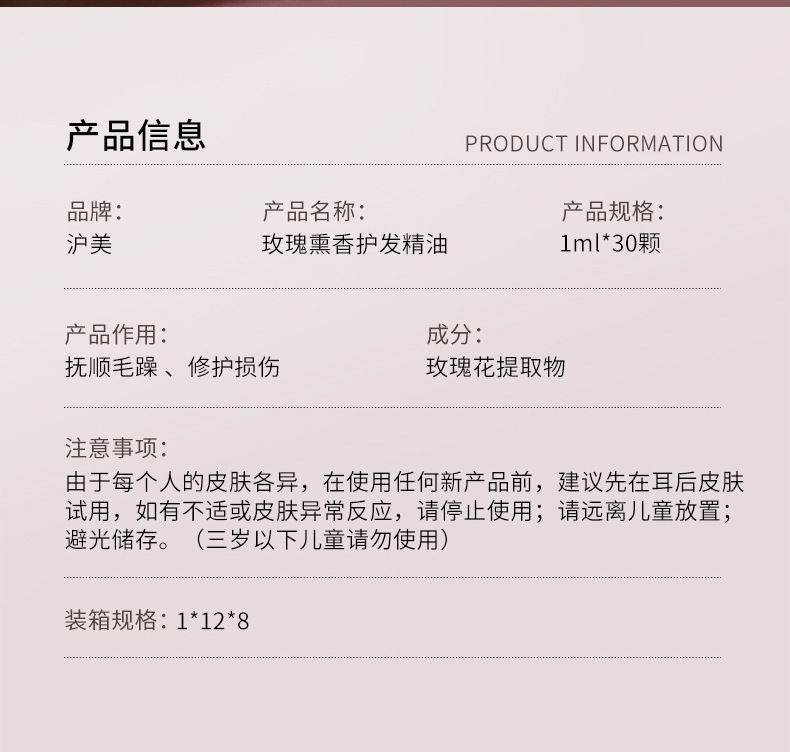 产品名称 玫瑰熏香护发精油