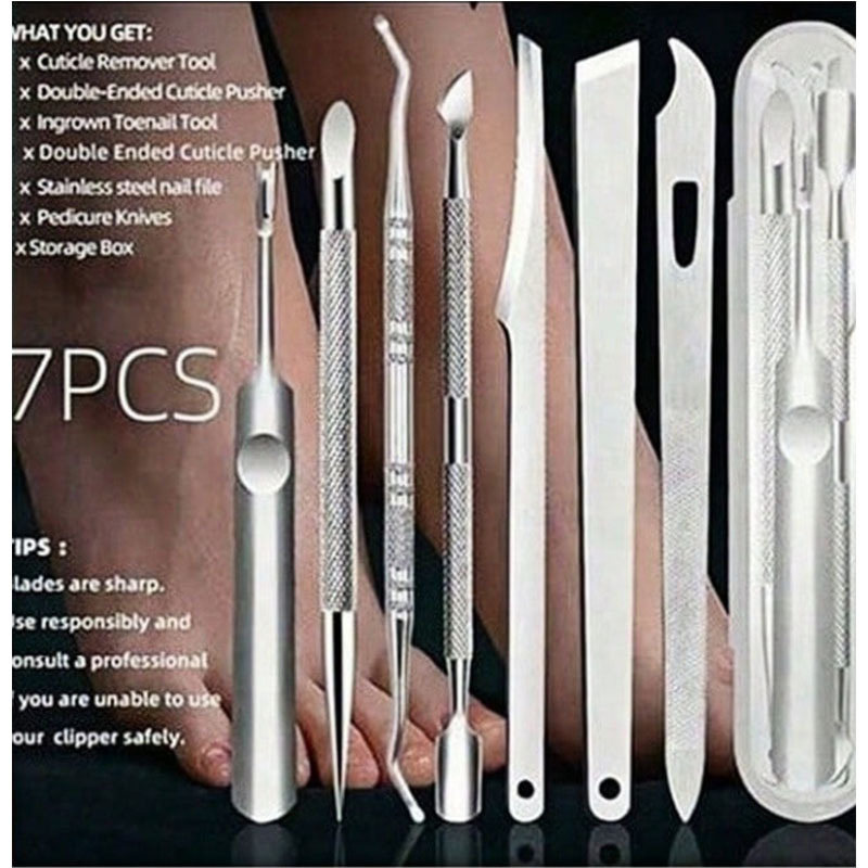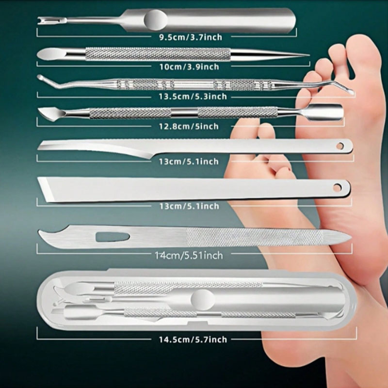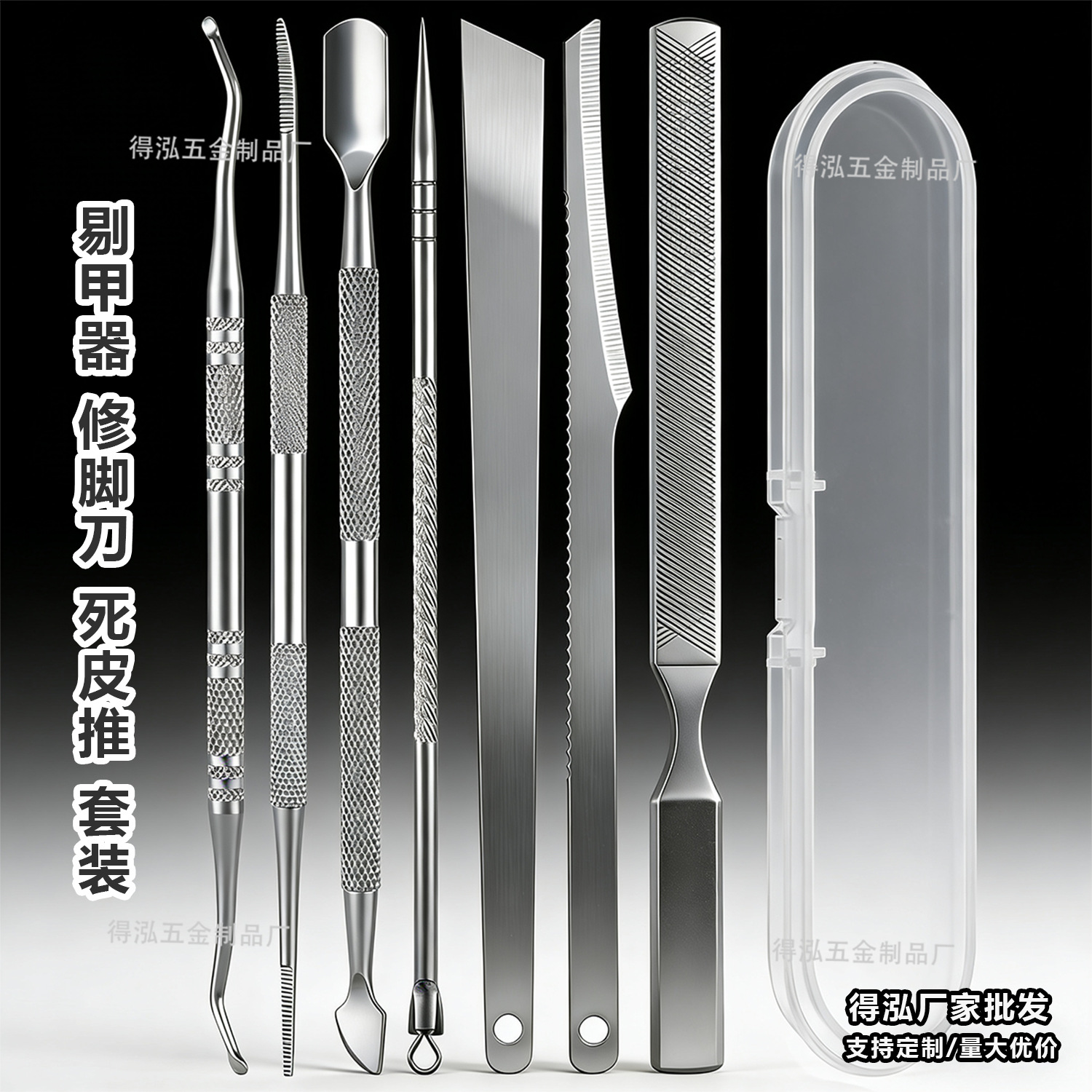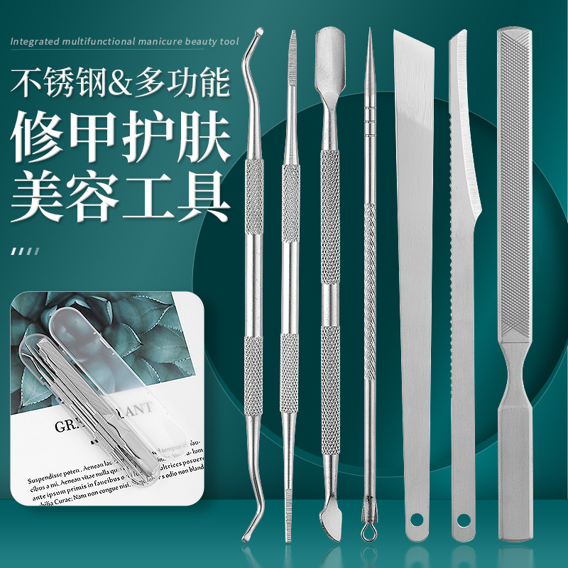 跨境不锈钢足部护理套装美甲店死皮叉双头剔甲器磨脚器去角质工具
