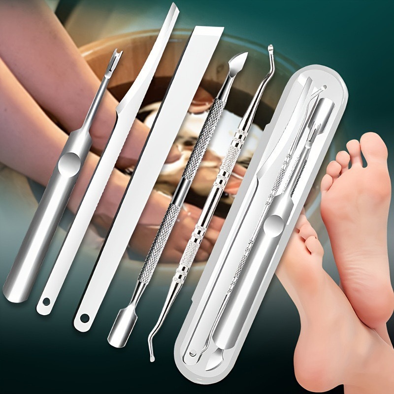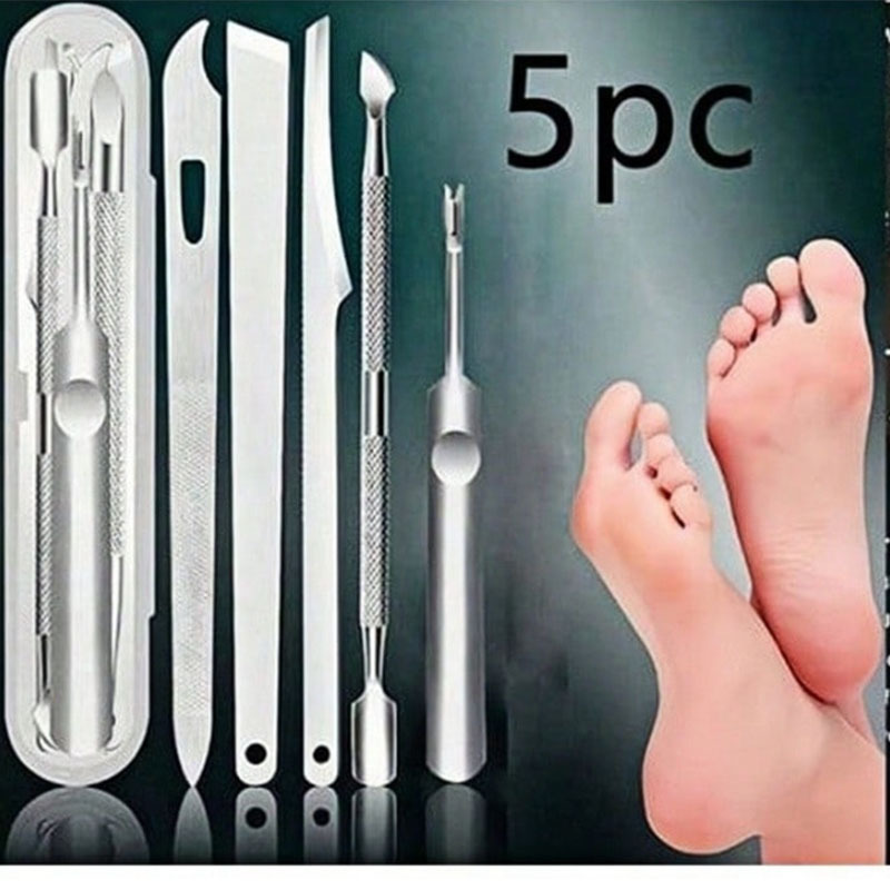 クロスボーダーのよく売れているステンレスの足を修理する刀のセットの死んだ皮のフォークのダブルヘッドは甲器の足を削って刀の5セットの箱を削ります。