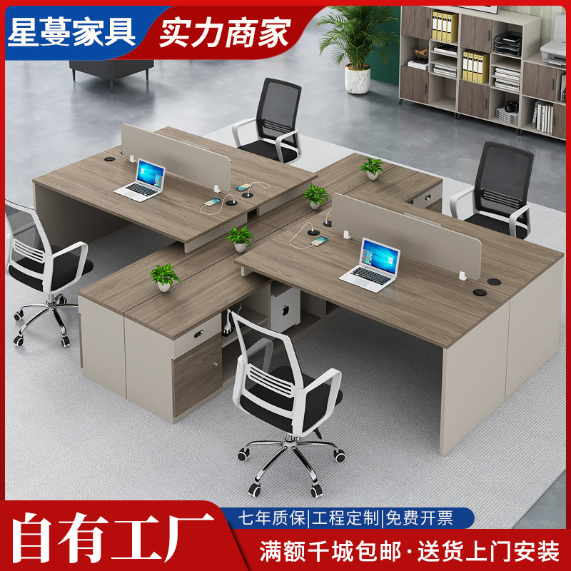 オフィスデスクスタッフステーションシンプルモダンスタッフオフィスデスクと椅子の組み合わせ4人用カードデッキデスク金融コンピュータデスク