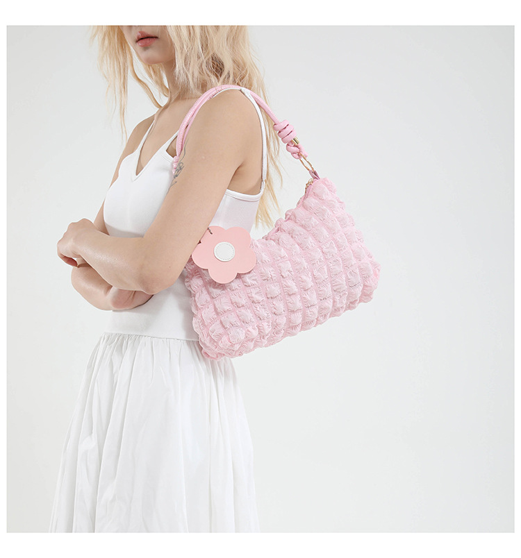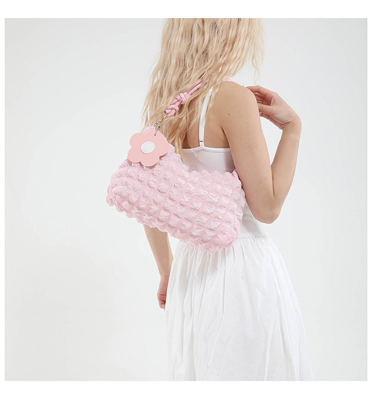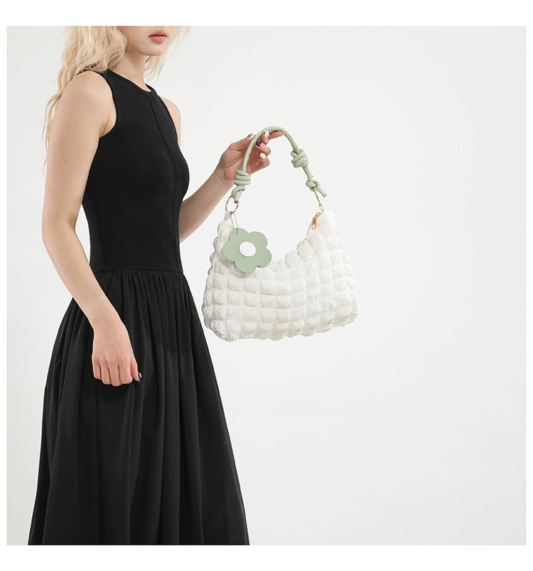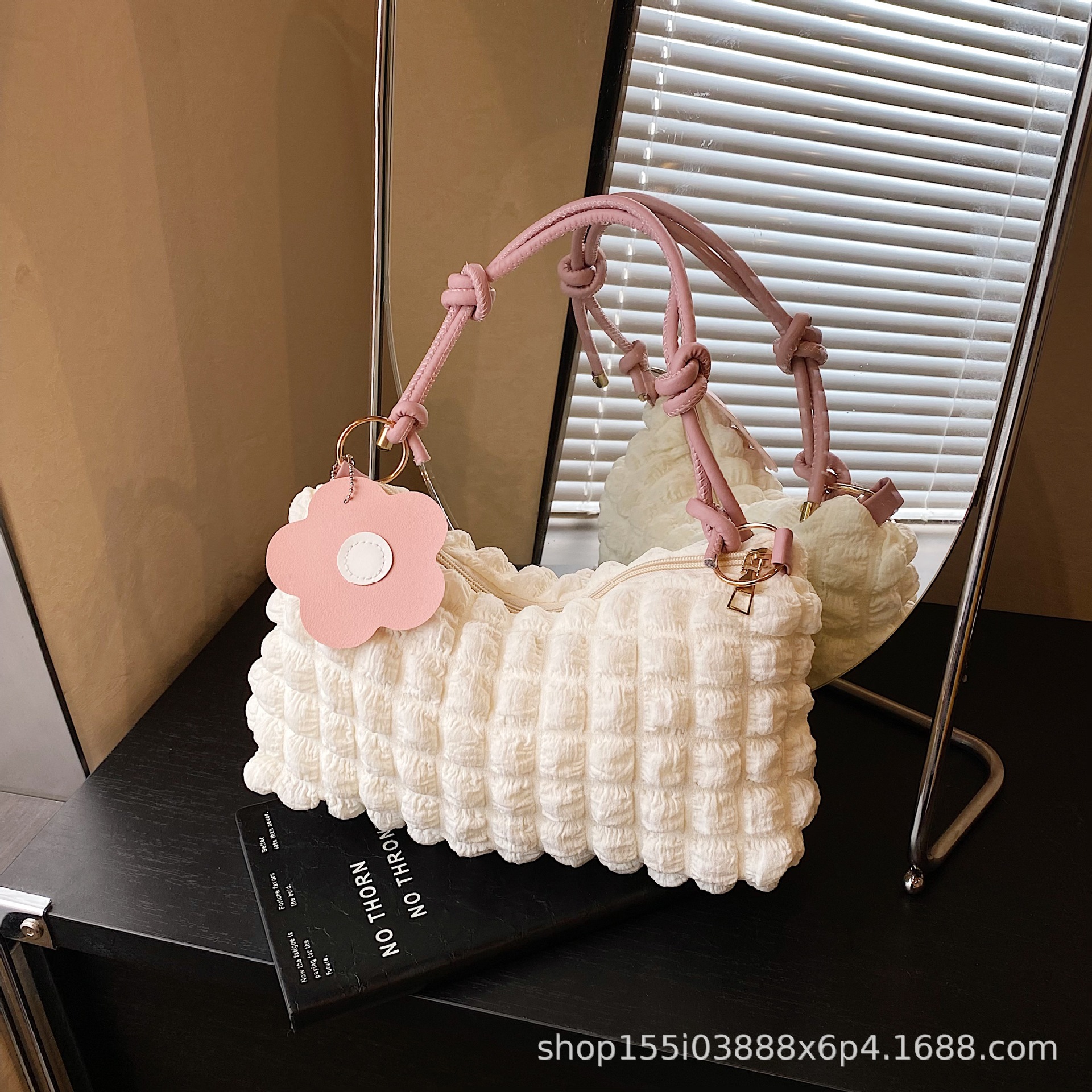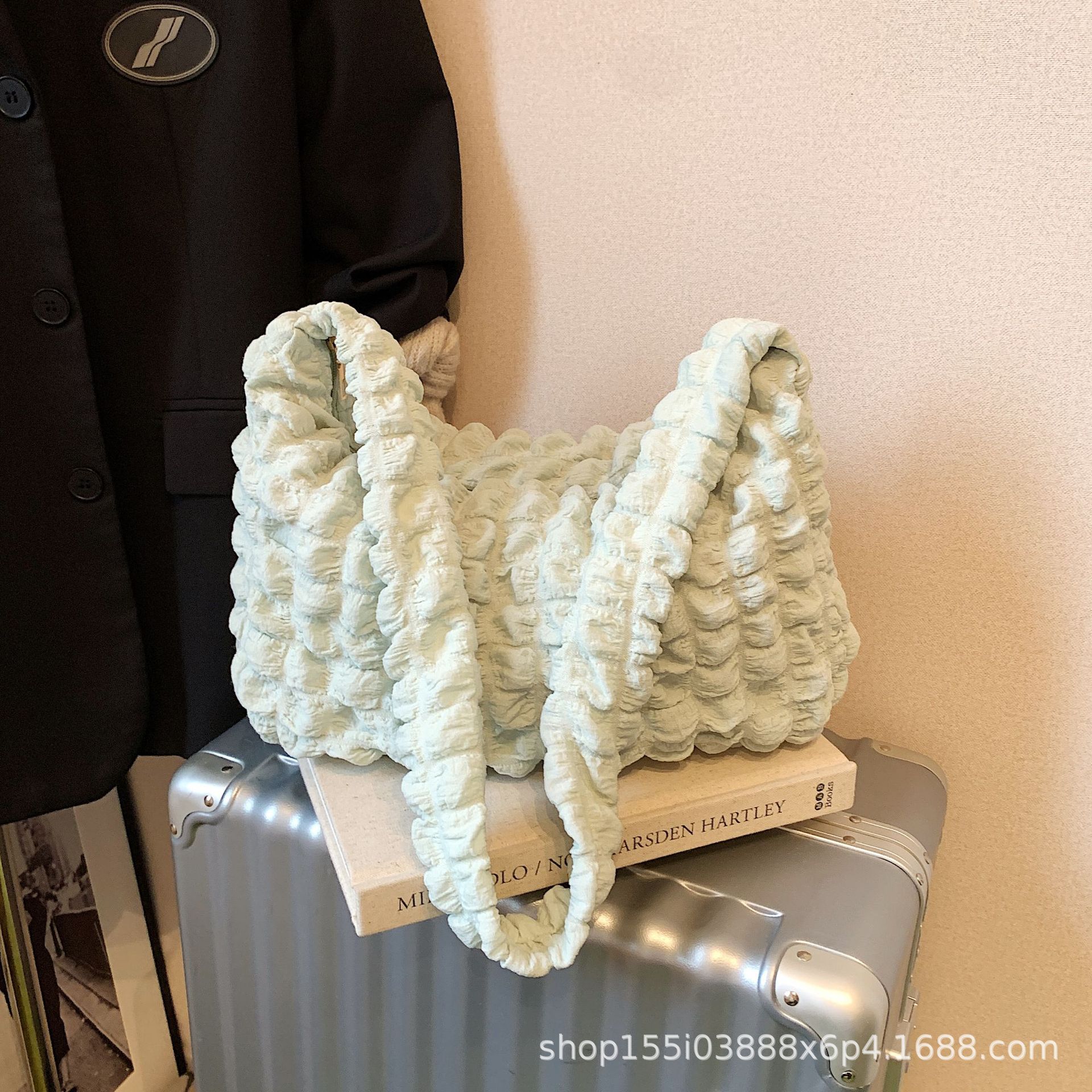シンプルな韓国風新作ハンドバッグ、フレッシュなプリーツデザインのショルダーバッグ、女性用ハンドバッグ、パフバッグ