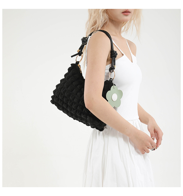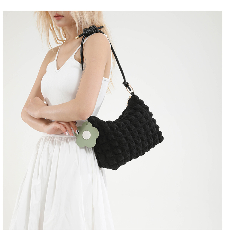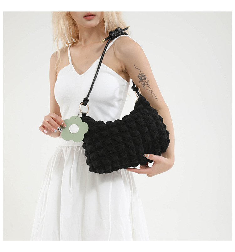 新款跨境洋气包包柔软质感大容量女通勤休闲泡芙云朵褶皱斜挎单肩