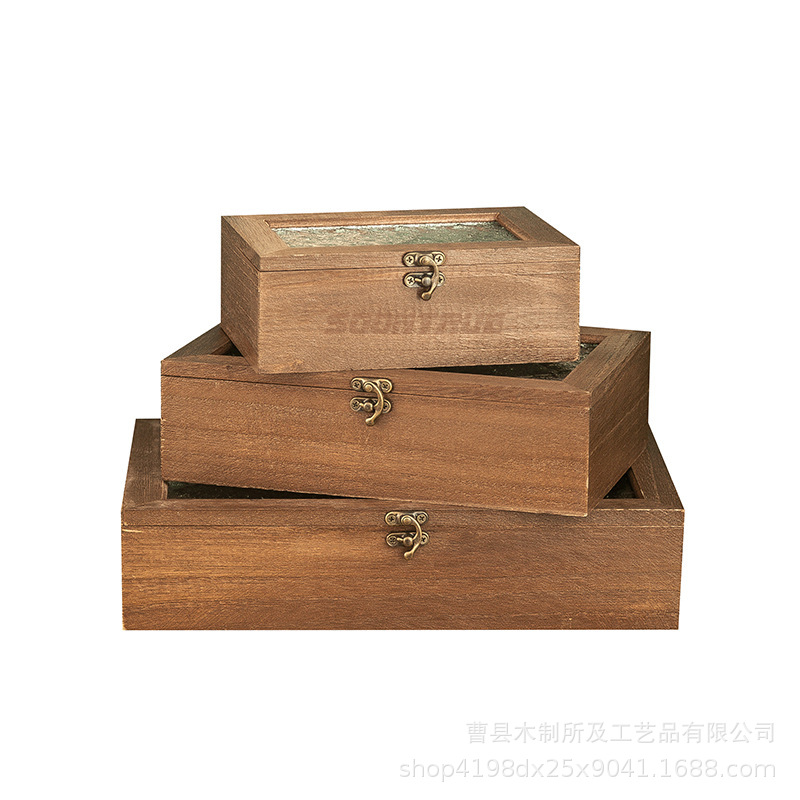ジュエリー化粧品収納ボックスレトロ木製ベゴニアフラワーガラス化粧台デスクトップ整理木箱フリップカバーメーカー