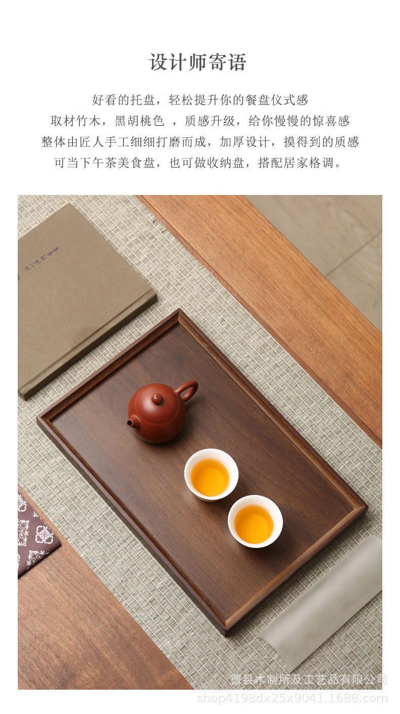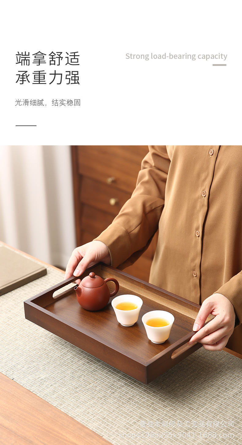 胡桃色竹木制茶盘长方形干泡盘家用放茶杯水杯盘敬茶奉茶手提托盘