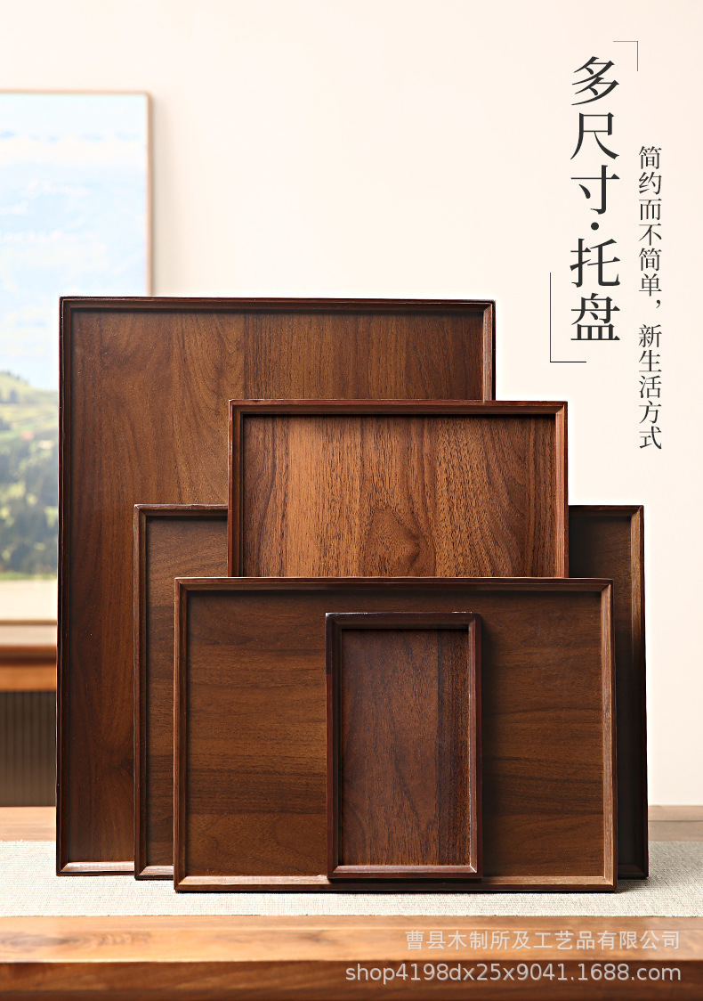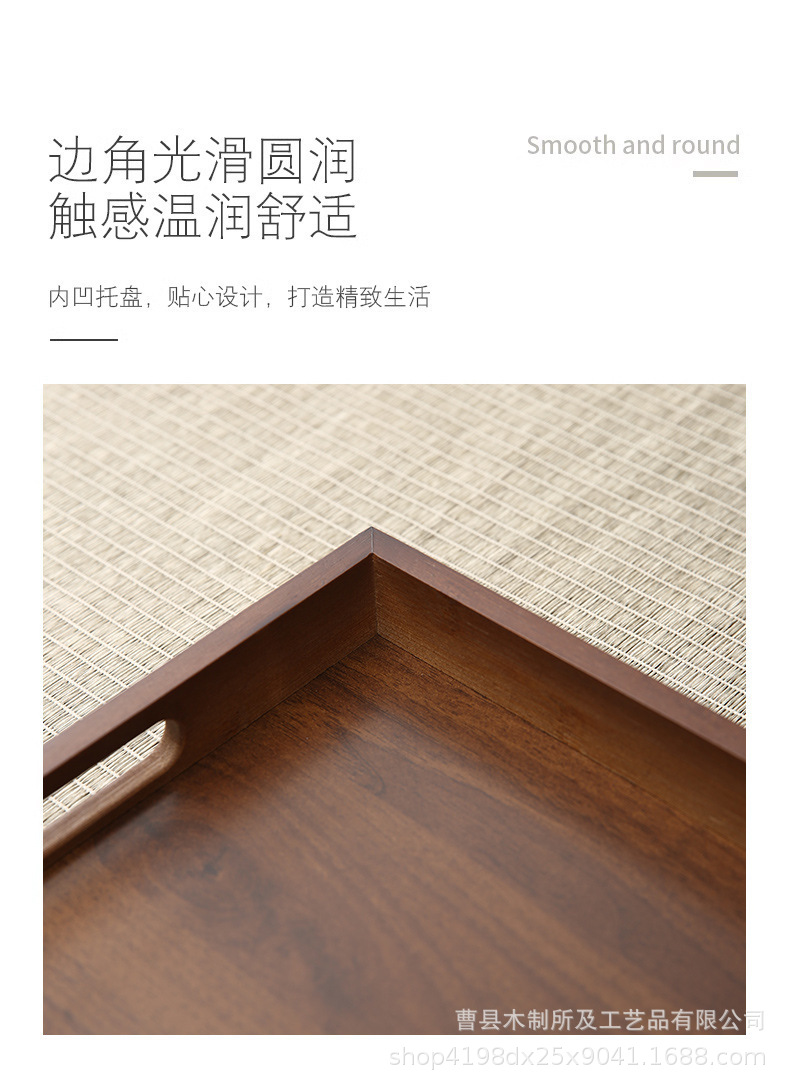 木製トレー胡桃木茶盤客間木製収納皿実木食盤刻印ロゴ入れカップトレイ