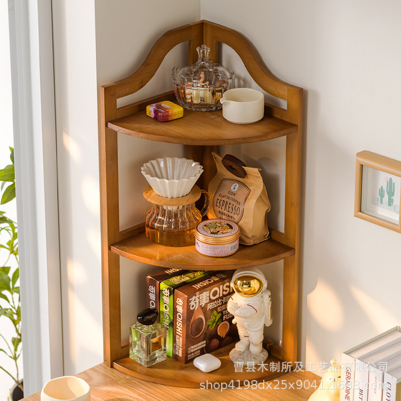 無垢材デスクトップキッチン調味料ボトル収納ラック化粧品ウォーターカップ研究収納ラックコーヒーティーセットコーナーラック