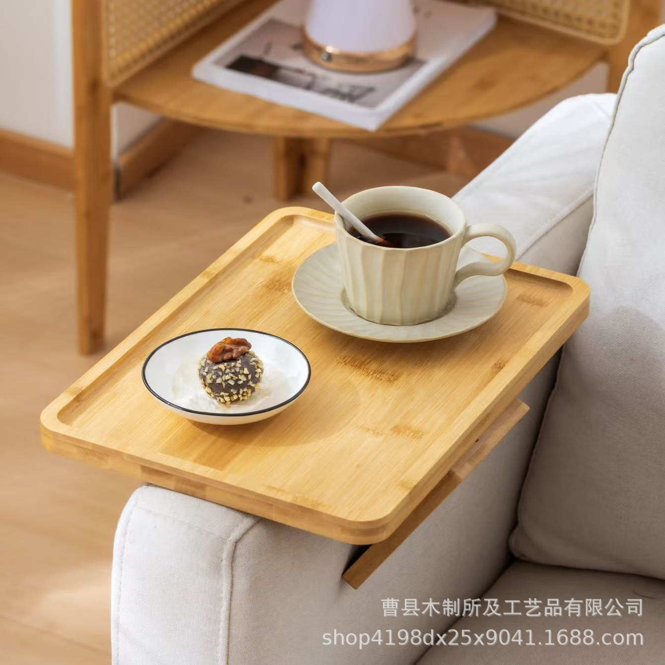 竹製家庭用ソファートレイ軽量贅沢棚ポータブル折り畳み式ソファサイドトレイ怠け者ソファ皿