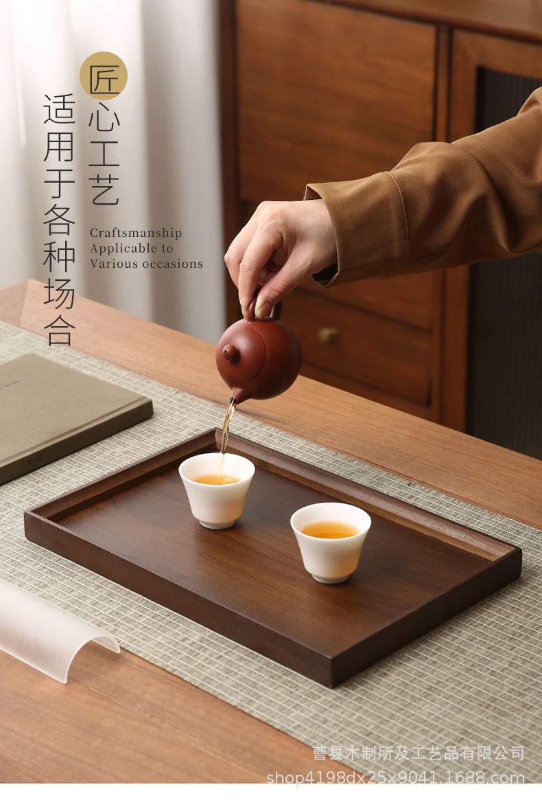 トレイ日本茶セット商業ホテルレストランディスプレイ竹木製トレイレトロダークウォーターカップ長方形家庭用